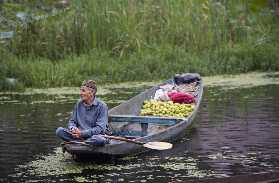 A man sells tea on his boat at Dal Lake in Srinagar, the summer capital of Indian-controlled Kashmir, Sept. 27, 2024. (Xinhua/Javed Dar)A man selling fruits waits for customers at Dal Lake in Srinagar, the summer capital of Indian-controlled Kashmir, Sept. 27, 2024. (Xinhua/Javed Dar)A fisherman casts net to catch fish on Dal Lake in Srinagar city, the summer capital of Indian-controlled Kashmir, June 15, 2022. (Xinhua/Javed Dar)A woman rows her boat laden with fodder for cattle on Dal Lake in Srinagar city, the summer capital of Indian-controlled Kashmir, June 15, 2022. (Xinhua/Javed Dar)A man rows his boat as a man walks on a footbridge on Dal Lake in Srinagar city, the summer capital of Indian-controlled Kashmir, June 15, 2022. (Xinhua/Javed Dar) ■