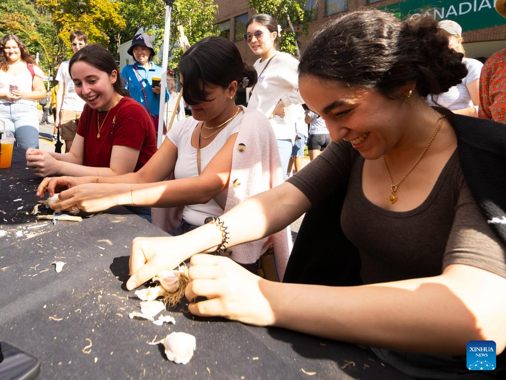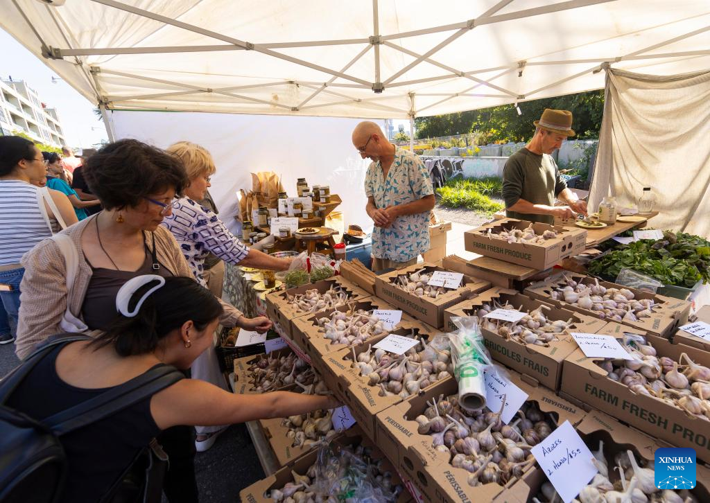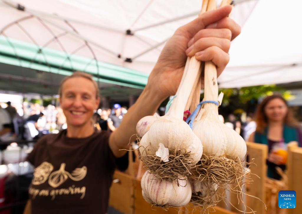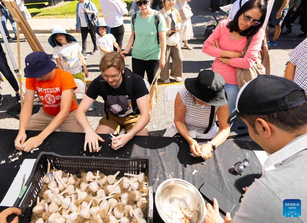 People shop for garlic during the 2024 Toronto Garlic Festival in Toronto, Canada, on Sept. 29, 2024.