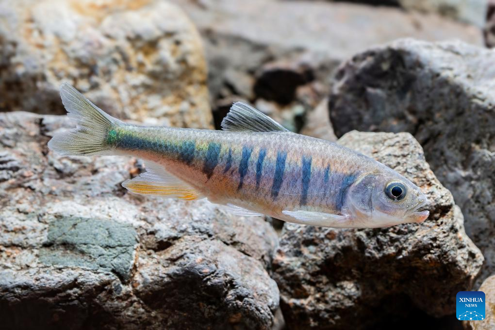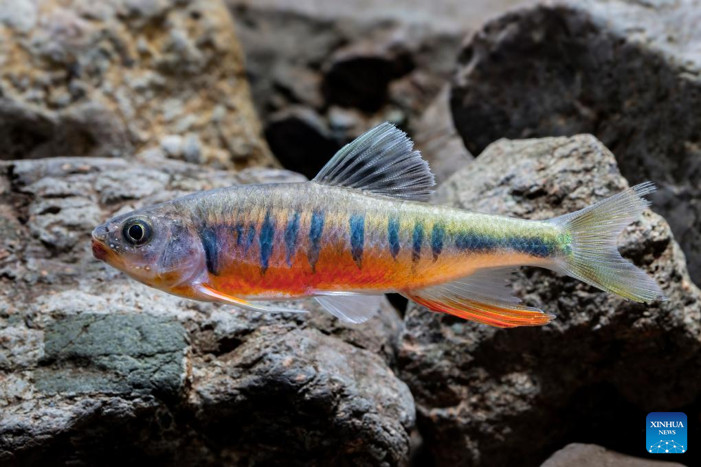 This photo taken in September 2024 shows Opsariichthys rubriventris, a new cyprinid fish species, in Huidong County of Huizhou City, south China's Guangdong Province.