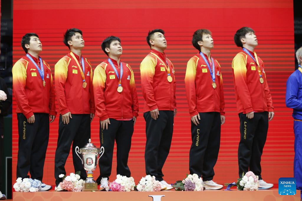 ASTANA, Oct. 10 (Xinhua) -- China defended its title in the men's team event with a 3-1 victory over Chinese Taipei at the 27th Asian Table Tennis Championships on Thursday.