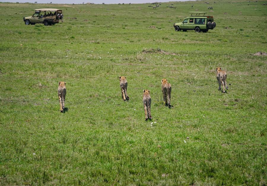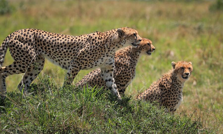 Cheetahs move in Kenya's Masai Mara National Reserve on Oct. 12, 2024. (Xinhua/Han Xu)