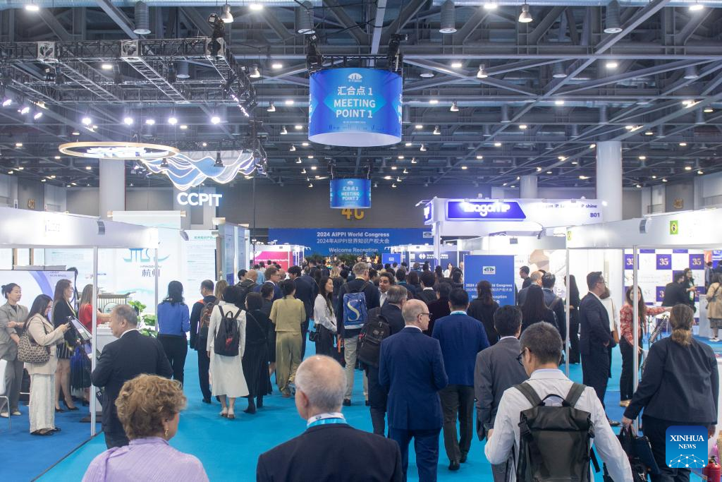 Participants visit an exhibition at the venue of the 2024 International Association for the Protection of Intellectual Property (AIPPI) World Congress in Hangzhou, east China's Zhejiang Province, Oct. 19, 2024.