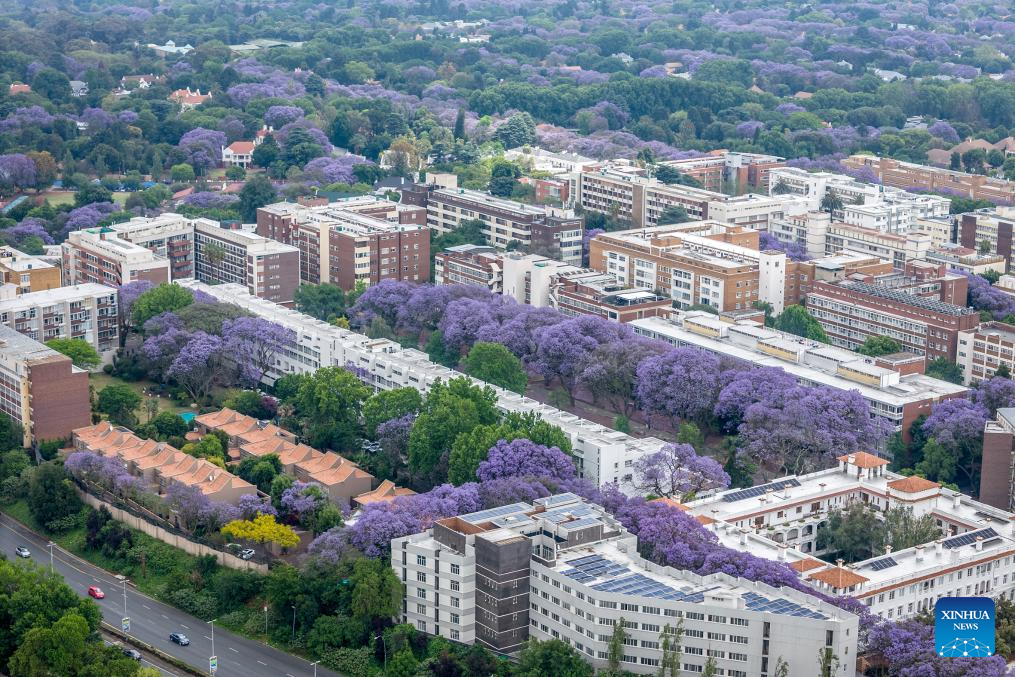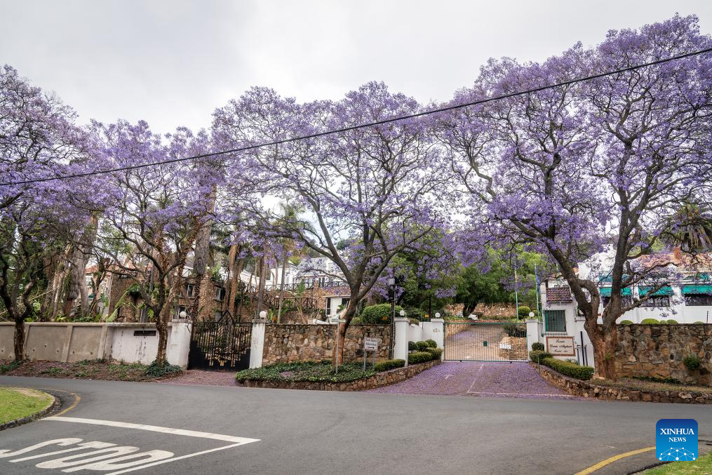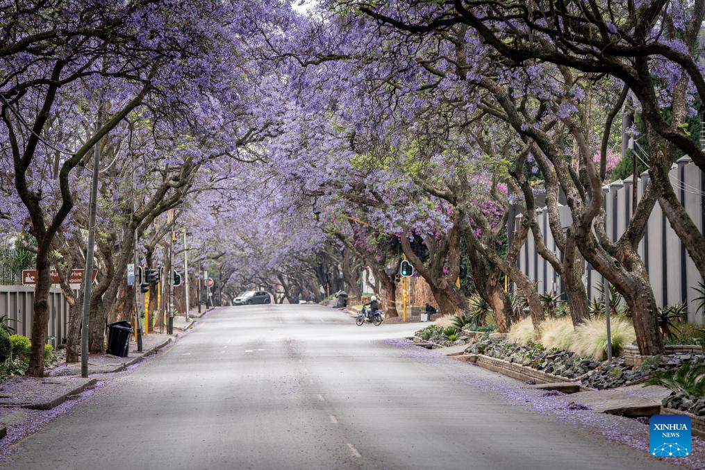 This photo taken on Oct. 22, 2024 shows blooming jacaranda trees in Johannesburg, South Africa. (Photo by Shiraaz Mohamed/Xinhua)
