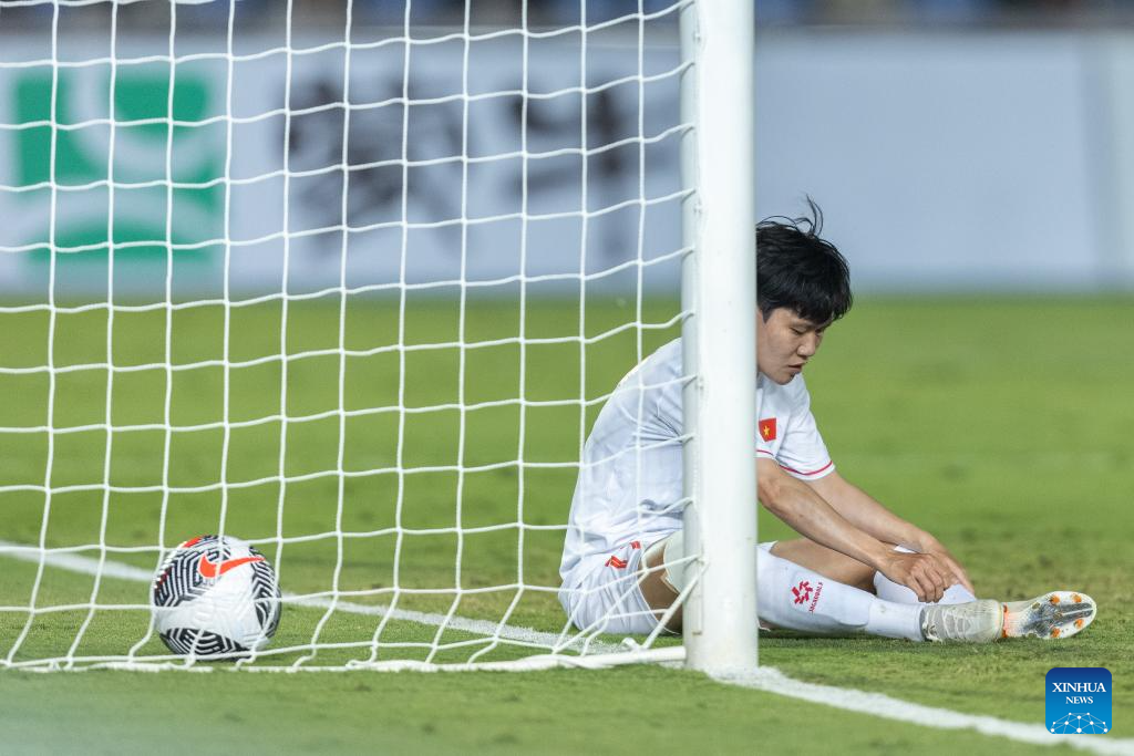 Tran Thi Thu Thao of Vietnam reacts during the match between China and Vietnam at 2024 CFA Team China International Women's Football Tournament Yongchuan in Chongqing, southwest China, Oct. 29, 2024. (Xinhua/Huang Wei)