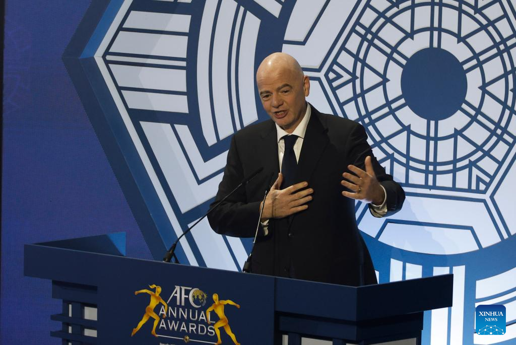 FIFA President Gianni Infantino speaks during the Asian Football Association (AFC) Annual Awards ceremony 2023 in Seoul, South Korea, Oct. 29, 2024. (Photo by Jun Hyosang/Xinhua)