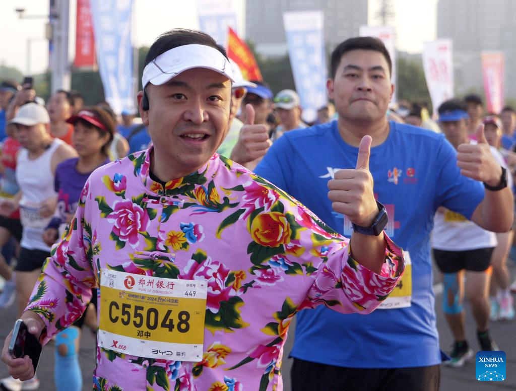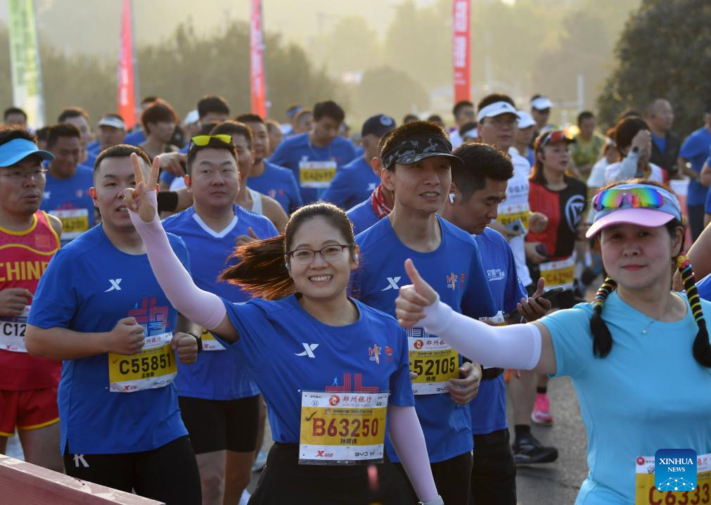 Participants pose during the 2024 Zhengzhou Marathon in Zhengzhou, central China's Henan Province, Nov. 3, 2024. (Xinhua/Li Jianan)