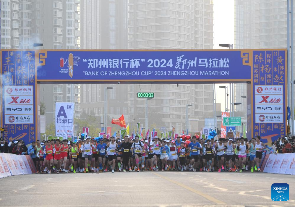 Participants start during the 2024 Zhengzhou Marathon in Zhengzhou, central China's Henan Province, Nov. 3, 2024. (Xinhua/Hao Yuan)