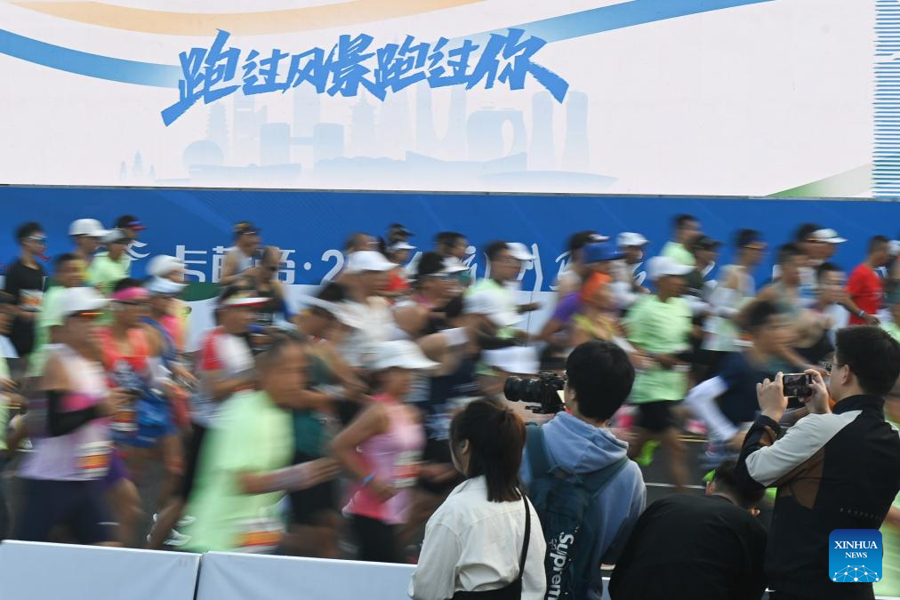 Participants start during the 2024 Hangzhou Marathon in Hangzhou, east China's Zhejiang Province, Nov. 3, 2024. (Xinhua/Huang Zongzhi)