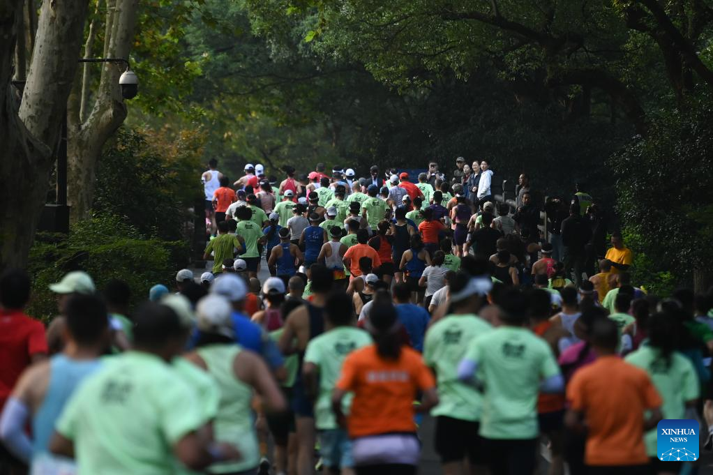 Participants run in the West Lake scenic area during the 2024 Hangzhou Marathon in Hangzhou, east China's Zhejiang Province, Nov. 3, 2024. (Xinhua/Huang Zongzhi)