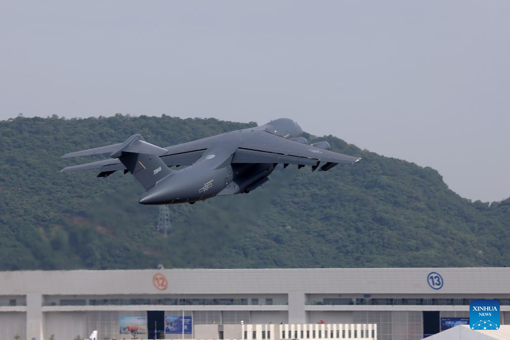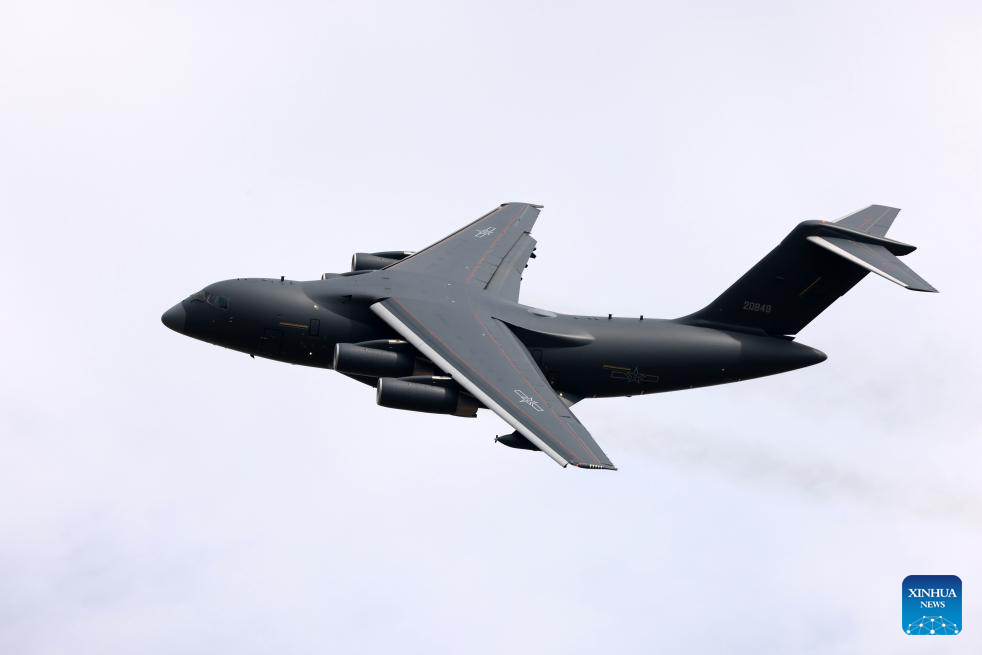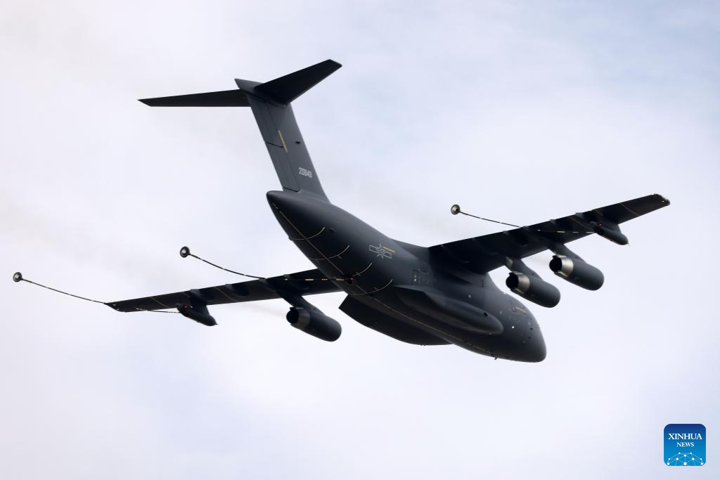 A YU-20 tanker aircraft conducts adaptive training for the upcoming 15th Airshow China in Zhuhai, south China's Guangdong Province, Nov. 9, 2024. The 15th China International Aviation and Aerospace Exhibition, also known as Airshow China, will be held in Zhuhai from Nov. 12 to 17. (Photo by Tan Sicheng/Xinhua)