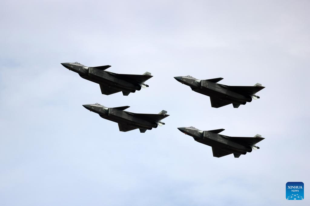 J-20 stealth fighter jets conduct adaptive training for the upcoming 15th Airshow China in Zhuhai, south China's Guangdong Province, Nov. 9, 2024. The 15th China International Aviation and Aerospace Exhibition, also known as Airshow China, will be held in Zhuhai from Nov. 12 to 17. (Photo by Tan Sicheng/Xinhua)