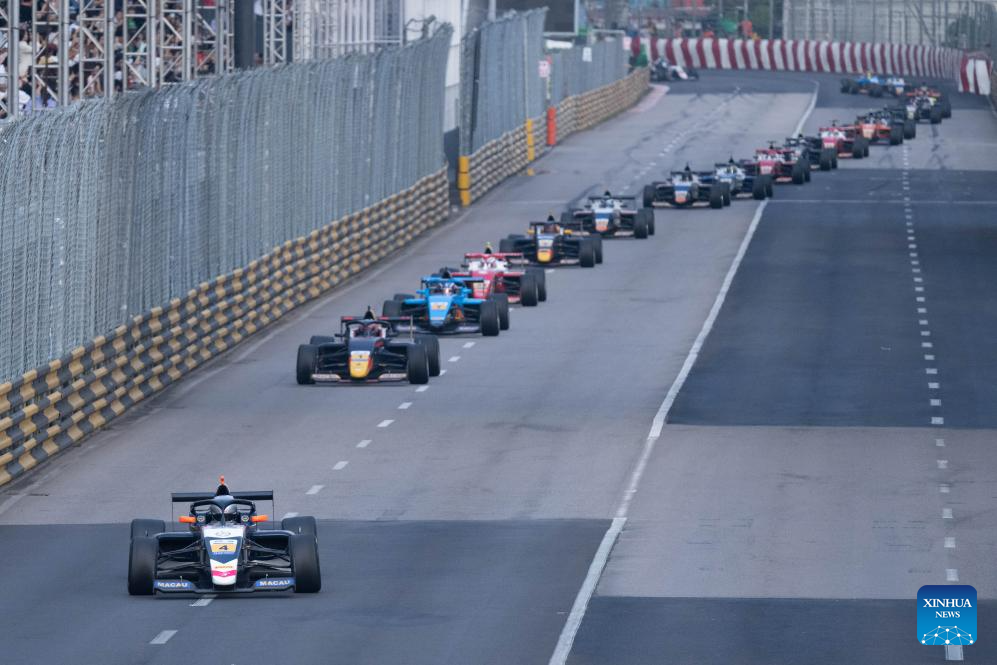 Ugo Ugochukwu (front) of the United States drives during the FIA FR World Cup race at the 71st Macao Grand Prix in Macao, south China, Nov. 17, 2024. (Xinhua/Cheong Kam Ka)