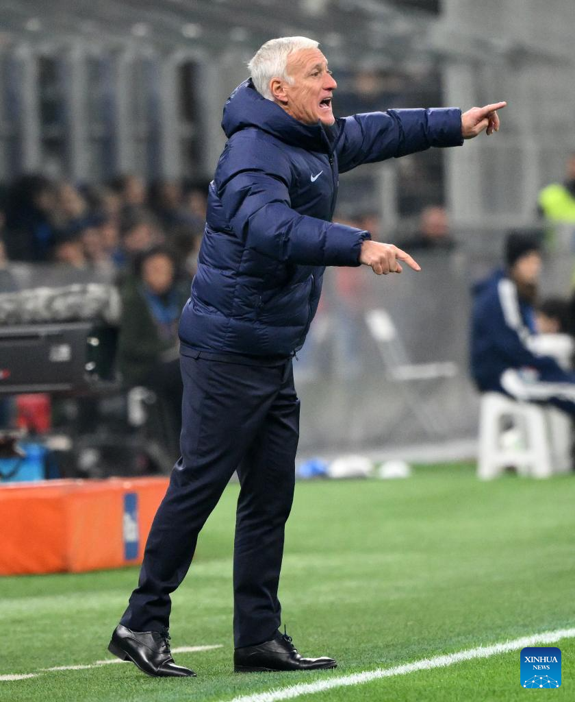 Didier Deschamps, head coach of France, gestures during the UEFA Nations League 2024/25 League A Group 2 football match between Italy and France in Milan, Italy, Nov. 17, 2024. (Photo by Alberto Lingria/Xinhua)