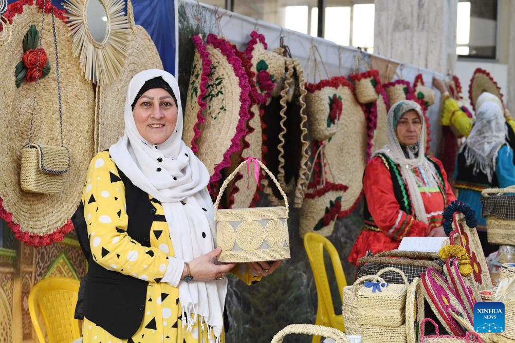 A woman shows straw handicraft in Rasht, Iran, Nov. 19, 2024. (Xinhua/Shadati)