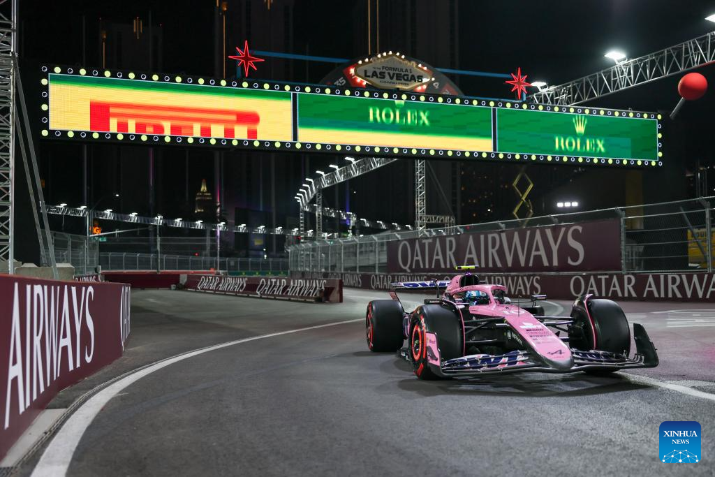 Alpine's French driver Pierre Gasly competes during the qualifying session of the 2024 Formula One U.S. Grand Prix at Las Vegas Circuit, in Las Vegas, the United States, Nov. 22, 2024. (Photo by Qian Jun/Xinhua)