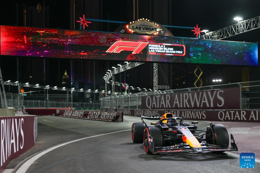 Red Bull Racing's Dutch driver Max Verstappen competes during the qualifying session of the 2024 Formula One U.S. Grand Prix at Las Vegas Circuit, in Las Vegas, the United States, Nov. 22, 2024. (Photo by Qian Jun/Xinhua)
