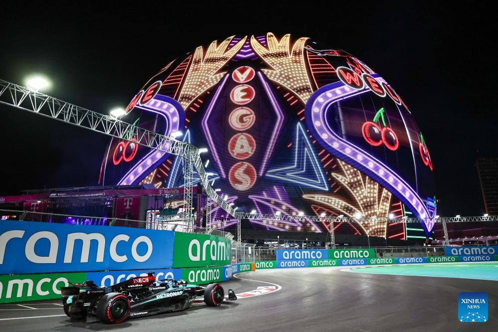 Mercedes' British driver George Russell competes during the qualifying session of the 2024 Formula One U.S. Grand Prix at Las Vegas Circuit, in Las Vegas, the United States, Nov. 22, 2024. (Photo by Qian Jun/Xinhua)