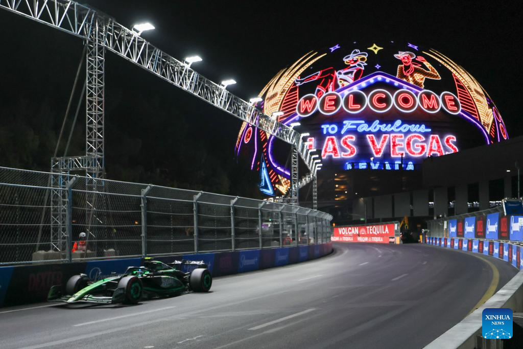 Kick Sauber's Chinese driver Zhou Guanyu competes during the qualifying session of the 2024 Formula One U.S. Grand Prix at Las Vegas Circuit, in Las Vegas, the United States, Nov. 22, 2024. (Photo by Qian Jun/Xinhua)