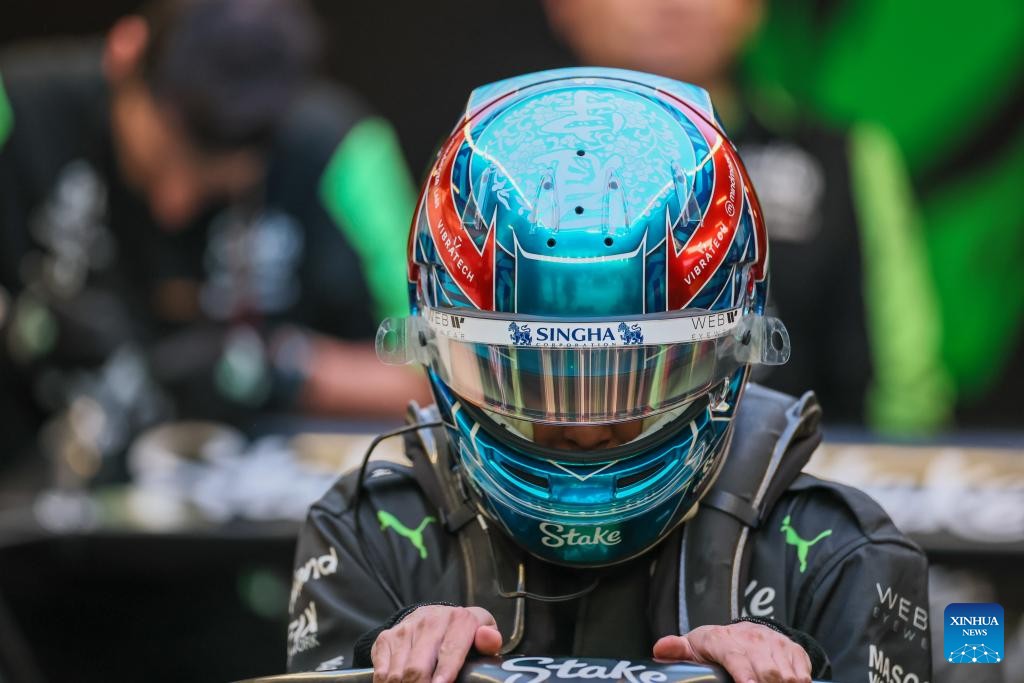 Kick Sauber's Chinese driver Zhou Guanyu is seen before the qualifying session of the 2024 Formula One U.S. Grand Prix at Las Vegas Circuit, in Las Vegas, the United States, Nov. 22, 2024. (Photo by Qian Jun/Xinhua)