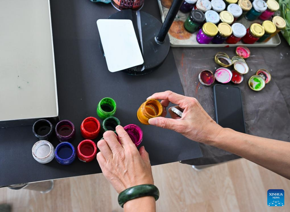 Li Xintong prepares paints for an Ebru creation in Istanbul, Türkiye, Nov. 5, 2024. Ebru, or the Turkish art of paper marbling, is a traditional painting art. To create an Ebru, the artist will have to paint on water and then transfer this painting onto paper. In 2014, Ebru was officially listed as a UNESCO World Intangible Culture Heritage.