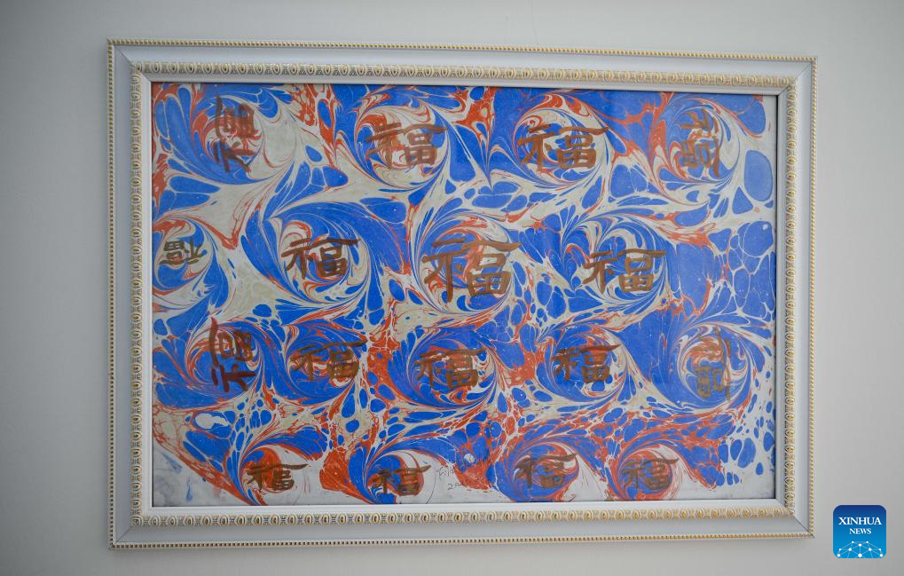 Growing up in northwest China's Xi'an city, Li Xintong moved to Istanbul in 2007. After seven years of Ebru training, Li became a teacher of the art. Her works are characterized by a mixture of Chinese elements with the art of Ebru. (Xinhua/Liu Lei)