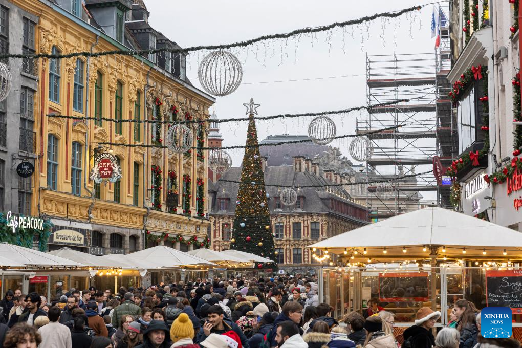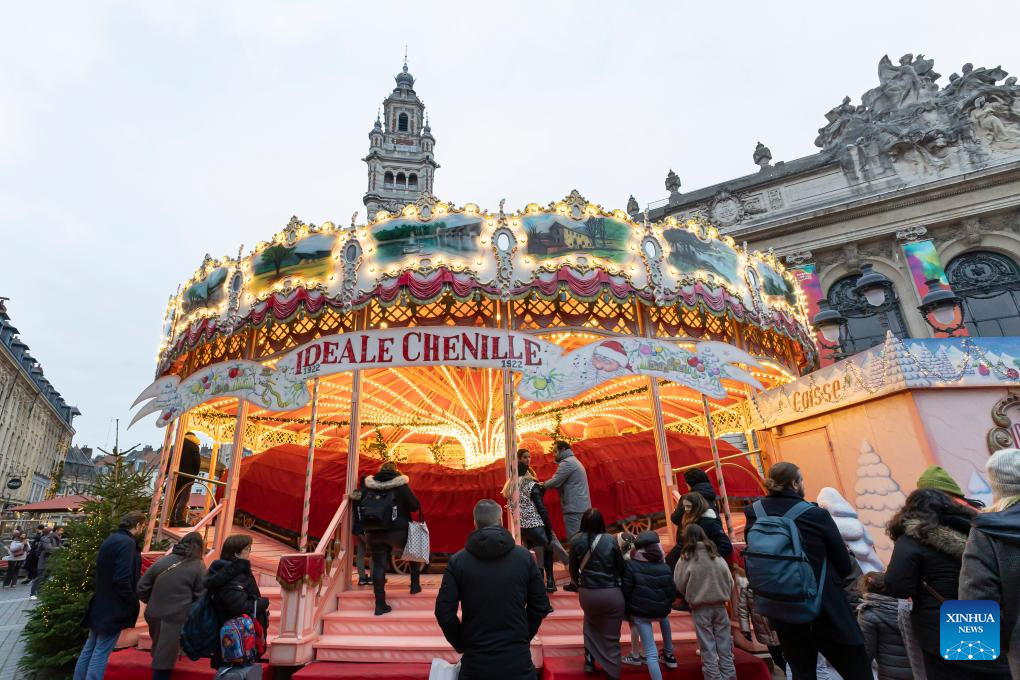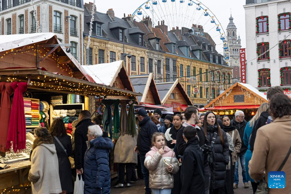 People visit the Christmas market in Lille, north France, Nov. 30, 2024. (Photo by Sebastien Courdji/Xinhua)