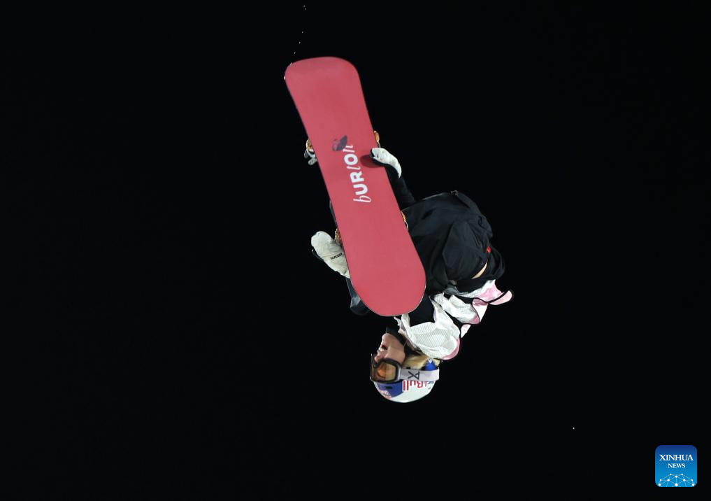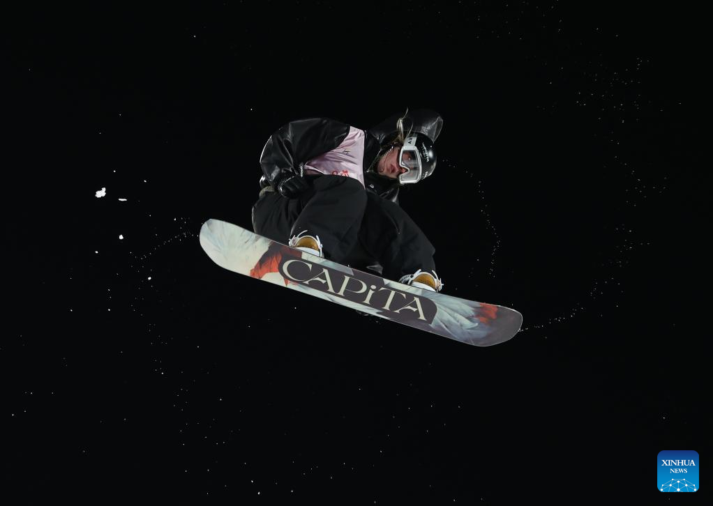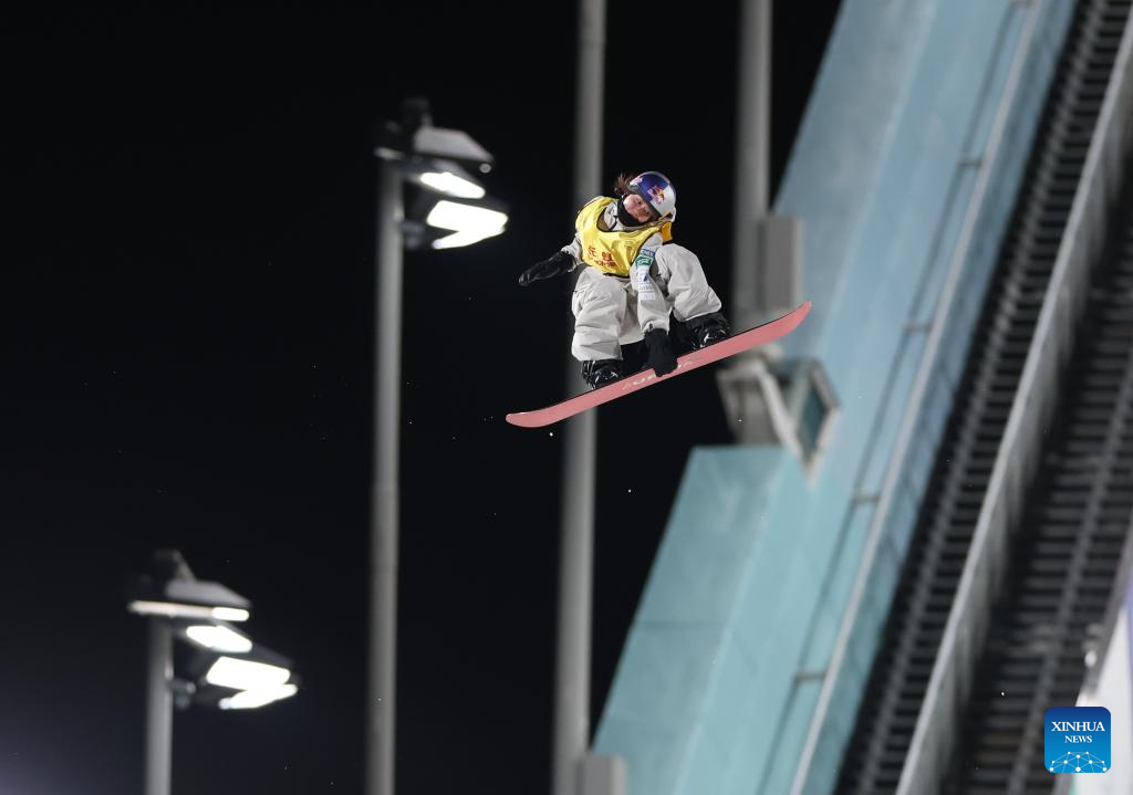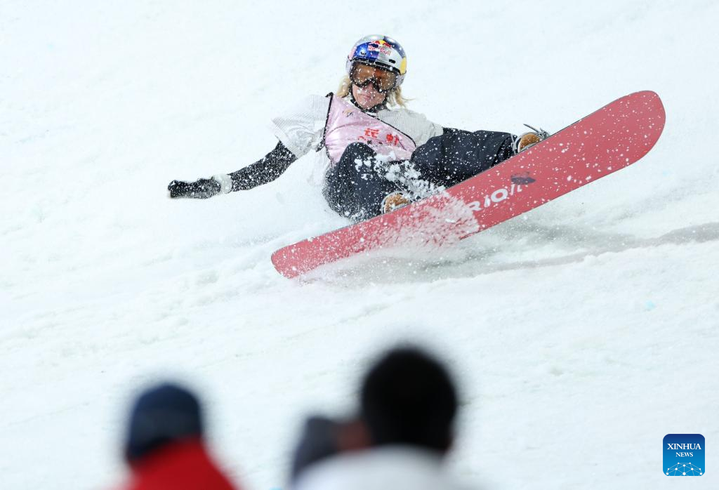 Mia Brookes of Britain competes during the women's snowboard final at the 2024-2025 FIS Snowboard & Freeski Big Air World Cup in Beijing, capital of China, on Dec. 1, 2024. (Xinhua/Zhang Chenlin)