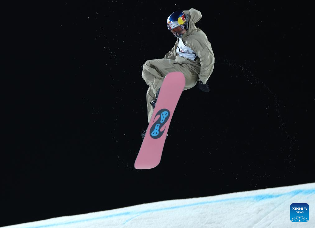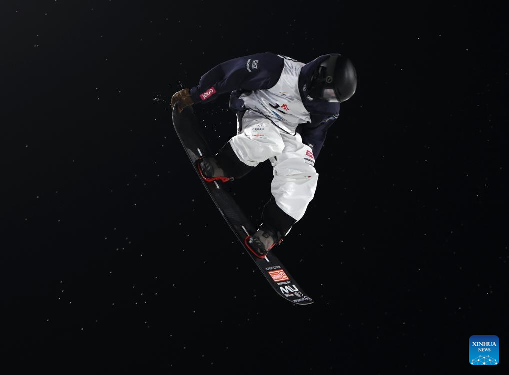 Su Yiming of China competes during the men's snowboard final at the 2024-2025 FIS Snowboard & Freeski Big Air World Cup in Beijing, capital of China, on Dec. 1, 2024. (Xinhua/Zhang Chenlin)