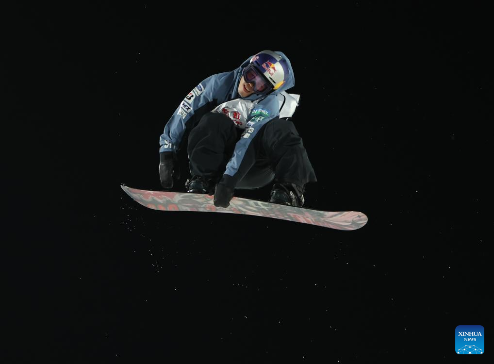 Fukada Mari of Japan competes during the women's snowboard final at the 2024-2025 FIS Snowboard & Freeski Big Air World Cup in Beijing, capital of China, on Dec. 1, 2024. (Xinhua/Zhang Chenlin)