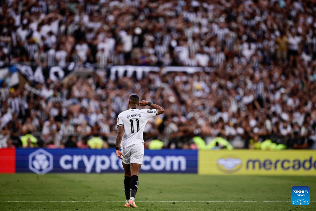 Junior Santos of Botafogo celebrate scoring during the final between Atletico Mineiro and Botafogo at the Copa Libertadores 2024 in Buenos Aires, Argentina, Nov. 30, 2024. (Photo by Luciano Gonzalez/Xinhua)