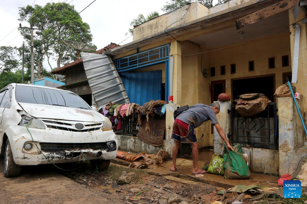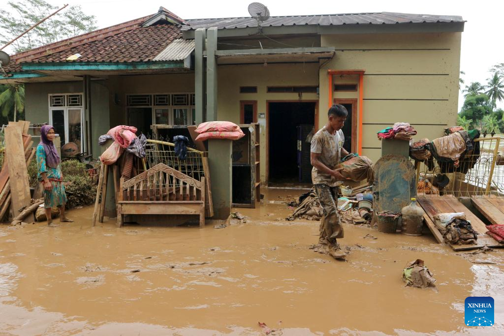 A man cleans up mud in his house after flood at Curug Luhur village in Sukabumi Regency, West Java Province, Indonesia, Dec. 5, 2024. Indonesia's Meteorological, Climatological, and Geophysical Agency (BMKG) announced on Wednesday that the country would face heavy rainfall during the upcoming Christmas and New Year holidays, urging people to remain vigilant. (Photo by Rangga Firmansyah/Xinhua)