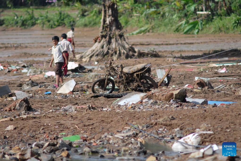 Children walk in a flood-hit area at Datarnangka village in Sukabumi Regency, West Java Province, Indonesia, Dec. 5, 2024. Indonesia's Meteorological, Climatological, and Geophysical Agency (BMKG) announced on Wednesday that the country would face heavy rainfall during the upcoming Christmas and New Year holidays, urging people to remain vigilant. (Photo by Rangga Firmansyah/Xinhua)