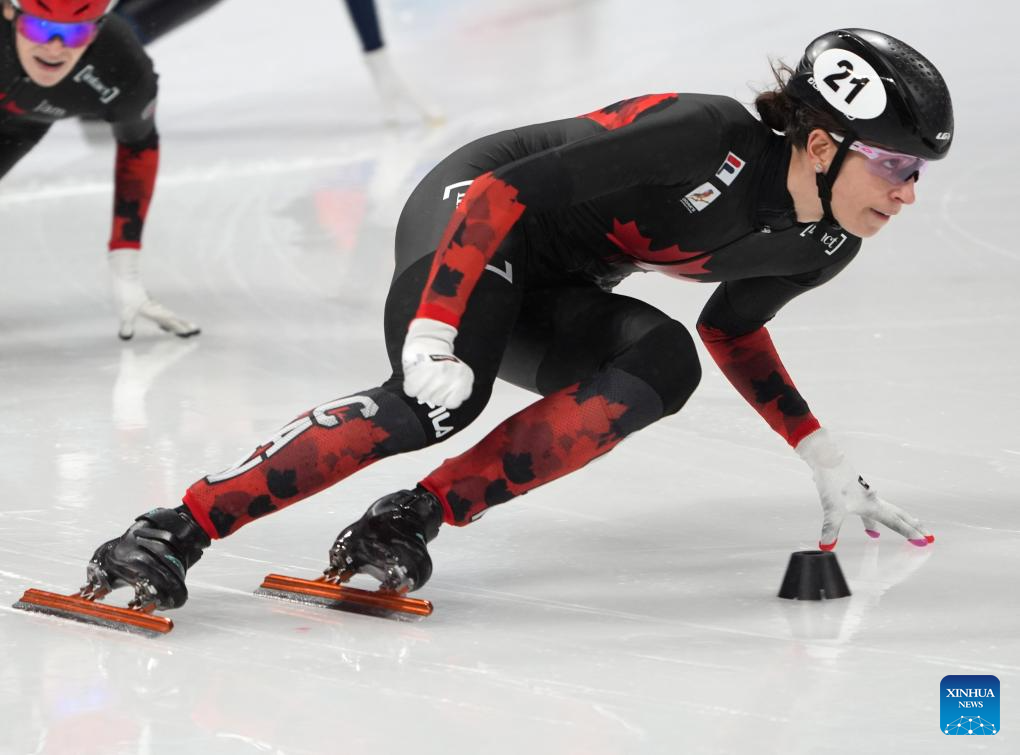 Rikki Doak of Canada competes during the women's 500m group A final at the ISU Short Track World Tour in Beijing, capital of China, on Dec. 8, 2024. (Xinhua/Zhang Chenlin)