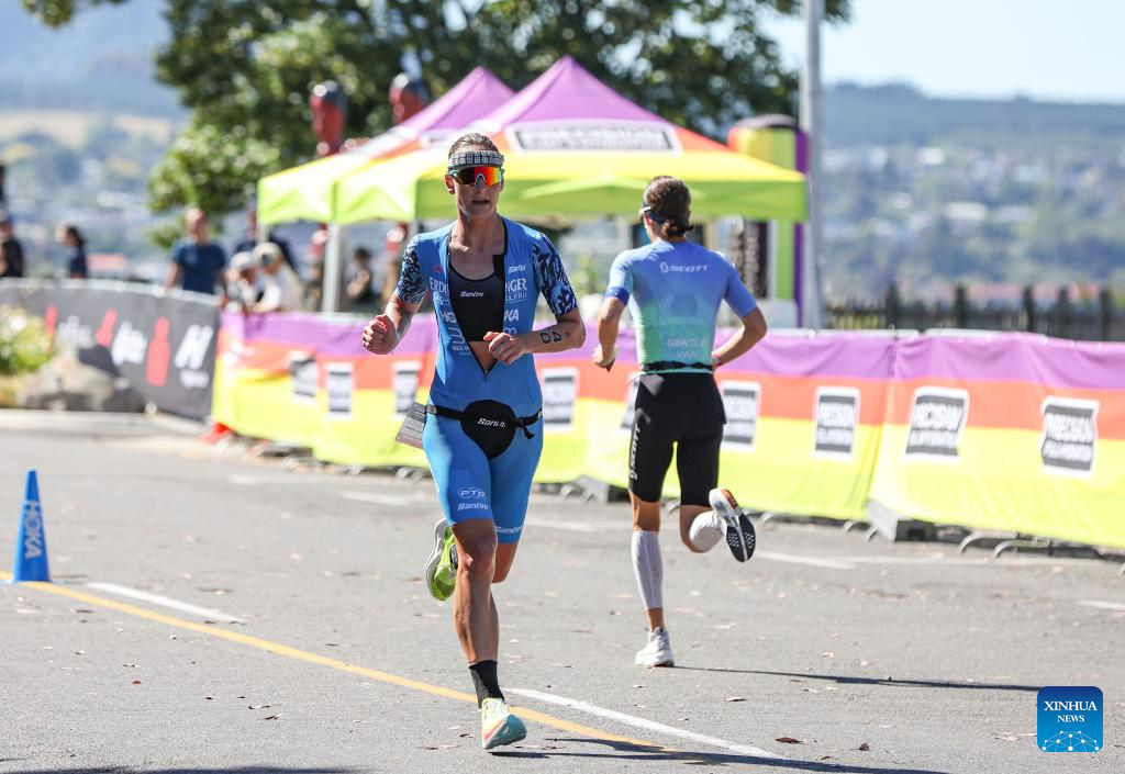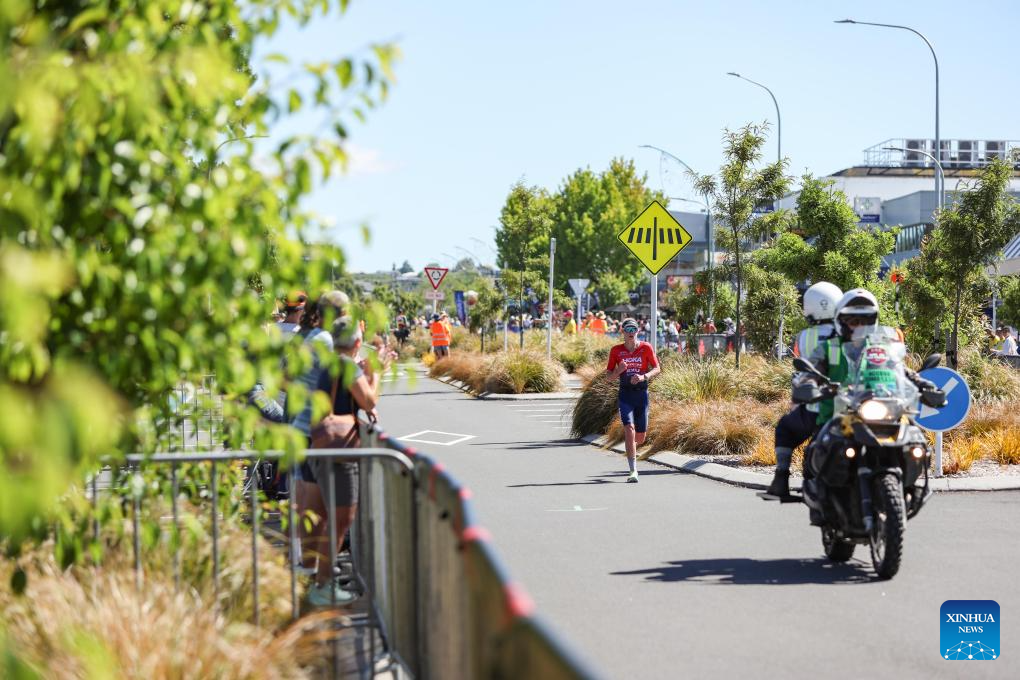 Ashleigh Gentle of Australia competes in the women's event during the 2024 Ironman 70.3 World Championship held in Taupo, New Zealand, Dec. 14, 2024. (Xinhua/Long Lei)