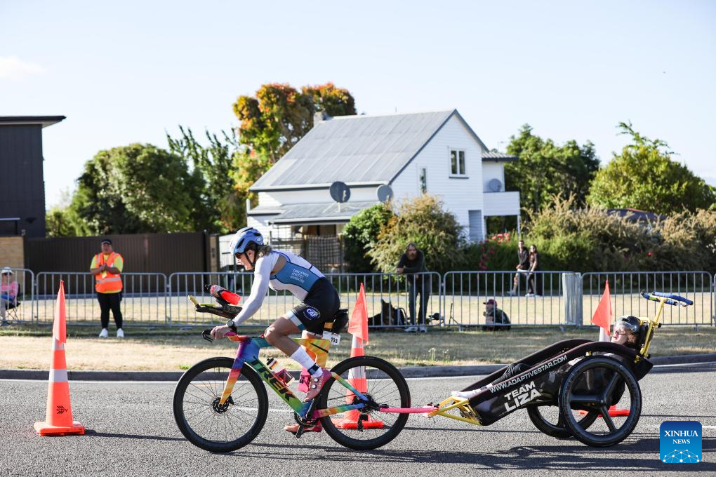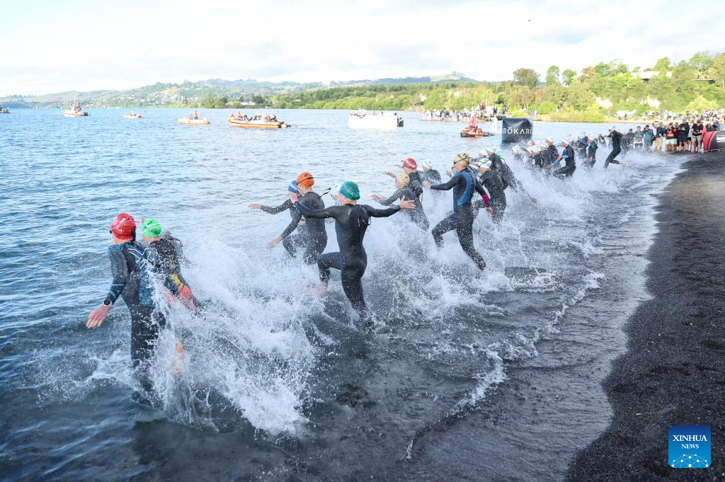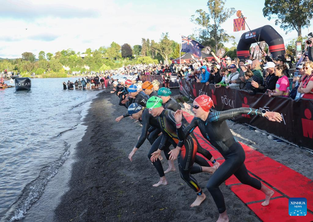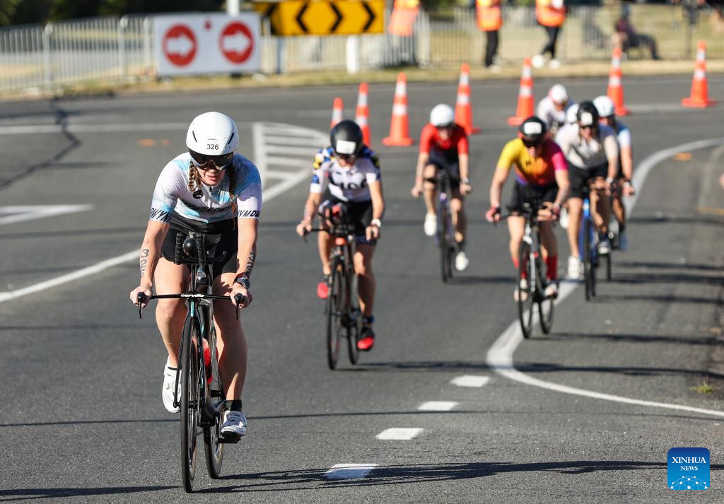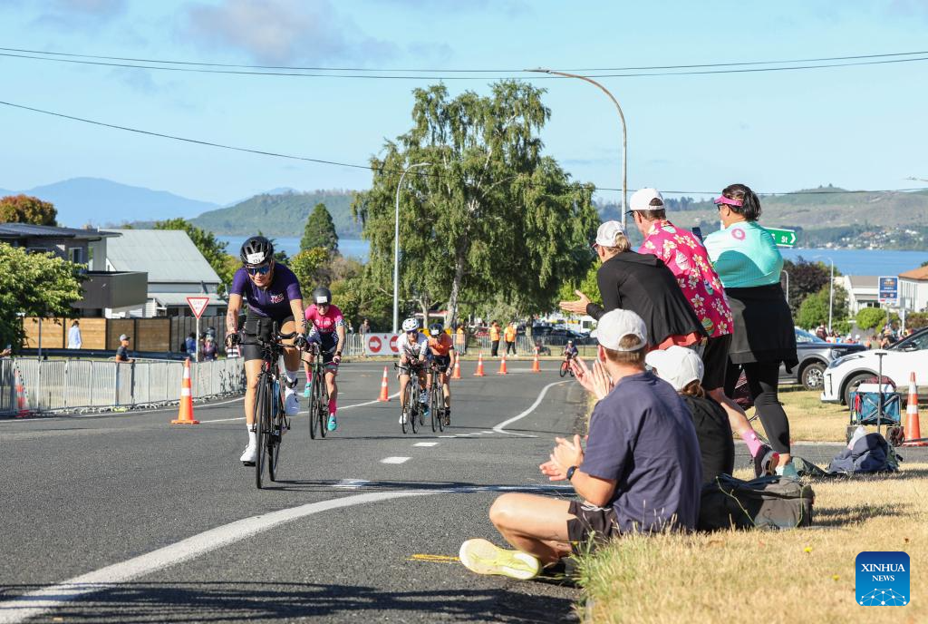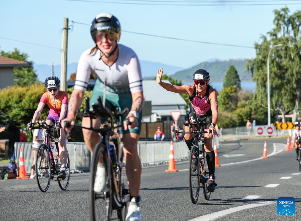 Participants compete in the women's event during the 2024 Ironman 70.3 World Championship held in Taupo, New Zealand, Dec. 14, 2024. (Xinhua/Long Lei)