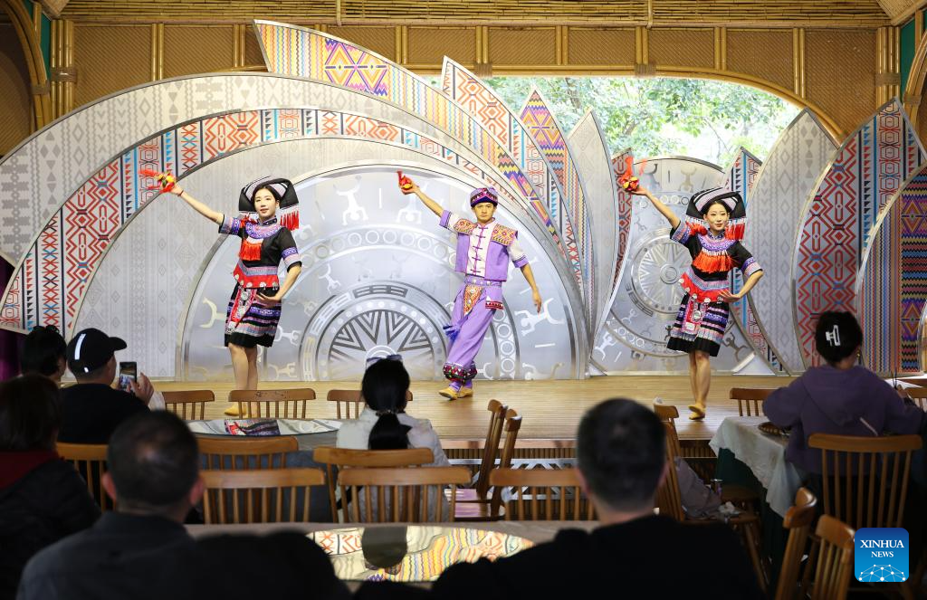 Dancers perform in the China-Vietnam Detian-Ban Gioc Waterfall cross-border tourism cooperation zone on Dec. 15, 2024. (Xinhua/Jin Haoyuan)
