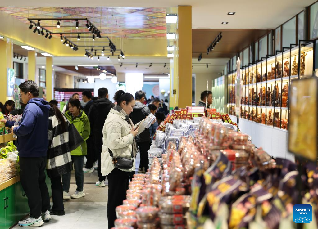 Tourists select goods in the Chinese part of the China-Vietnam Detian-Ban Gioc Waterfall cross-border tourism cooperation zone in Chongzuo, south China's Guangxi Province, Dec. 15, 2024. (Xinhua/Jin Haoyuan)