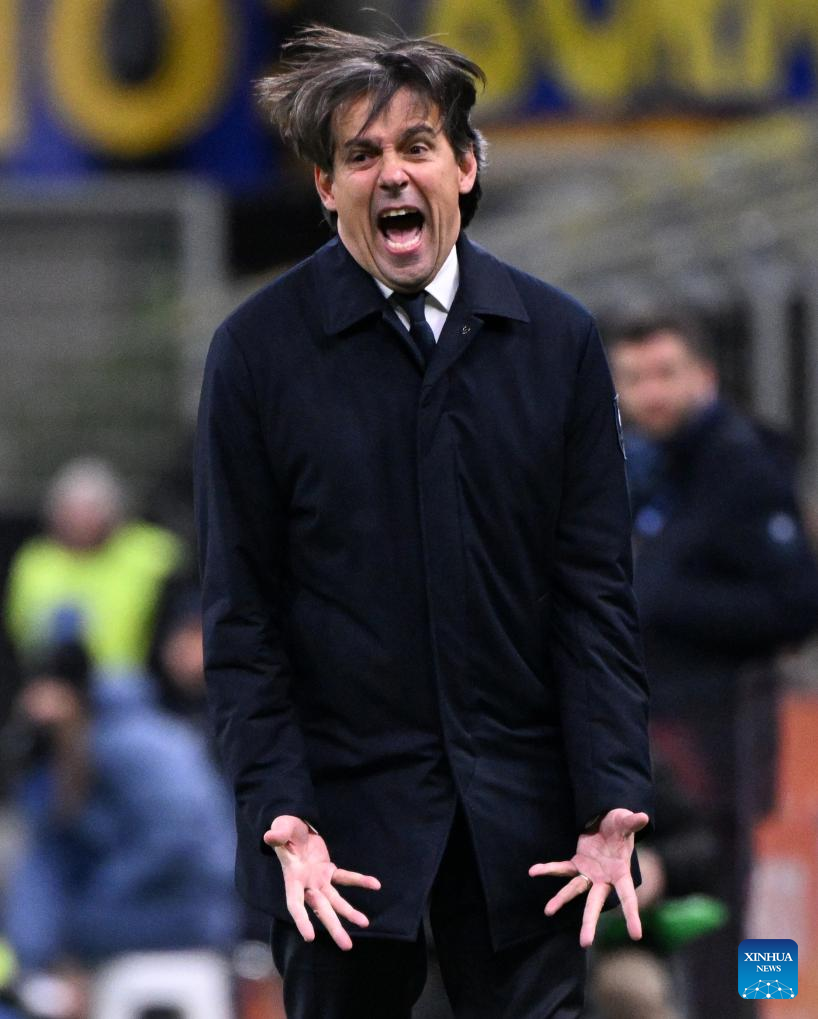 Inter Milan's head coach Simone Inzaghi reacts during a Serie A football match between Inter Milan and Como in Milan, Italy, Dec. 23, 2024. (Photo by Alberto Lingria/Xinhua)