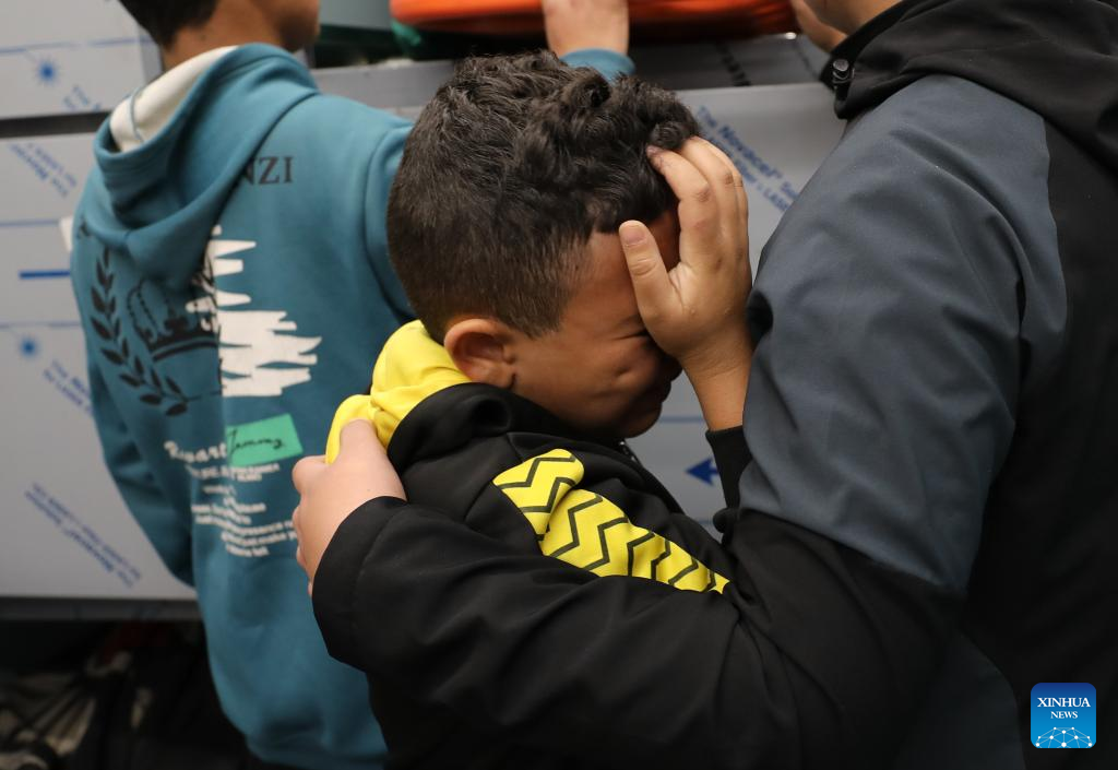 A Palestinian boy mourns a victim killed by the Israeli army at a hospital in the West Bank city of Tulkarm, on Dec. 25, 2024. (Photo by Nidal Eshtayeh/Xinhua)
