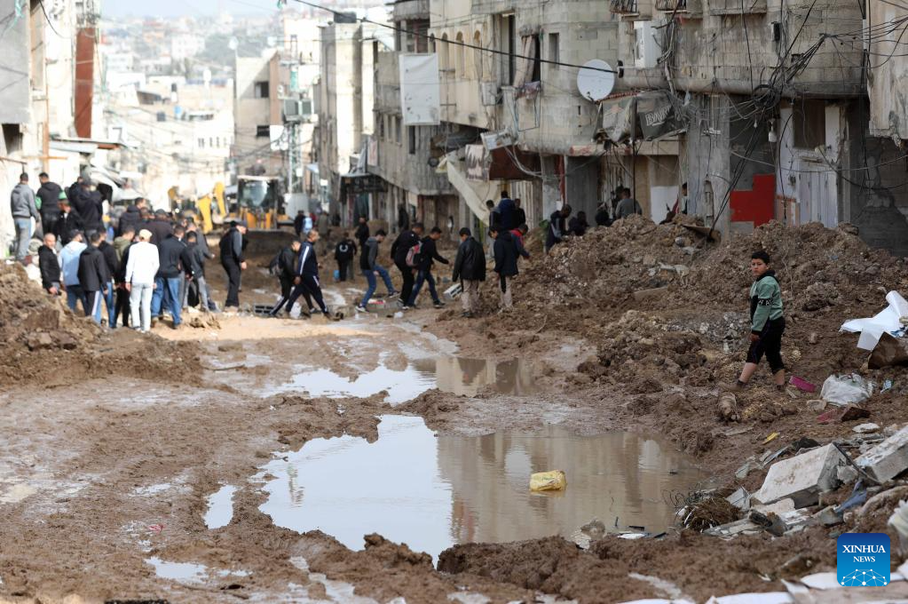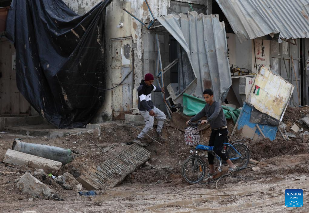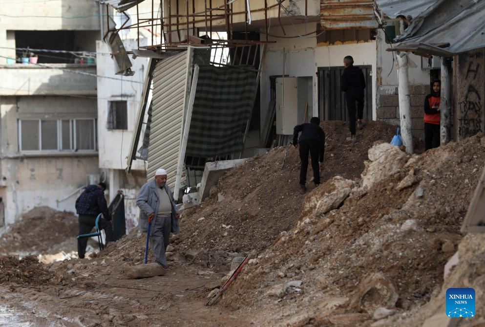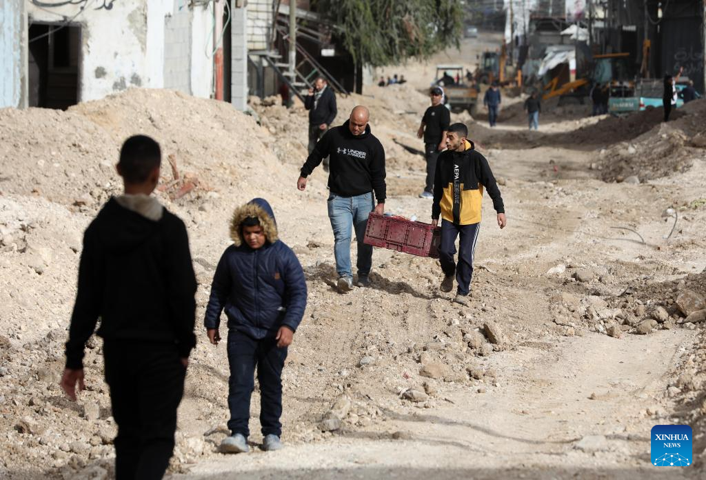People are seen on a street after an Israeli military operation in Tulkarm refugee camp in the northern West Bank, on Dec. 26, 2024. The Israeli army has been carrying out a large-scale military operation since Tuesday in the Tulkarm and Nur Shams refugee camps. (Photo by Ayman Nobani/Xinhua)