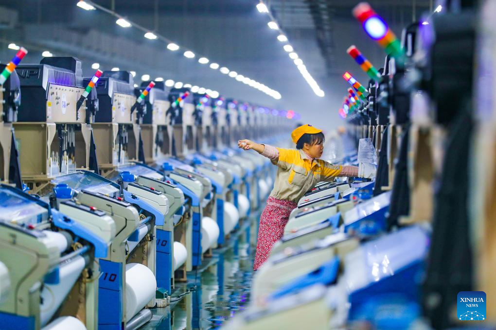 A worker is seen busy on the production line at a textile workshop in Hengli (Luzhou) Industrial Park in Luzhou City, southwest China's Sichuan Province, Dec. 24, 2024. (Photo by Mu Ke/Xinhua)