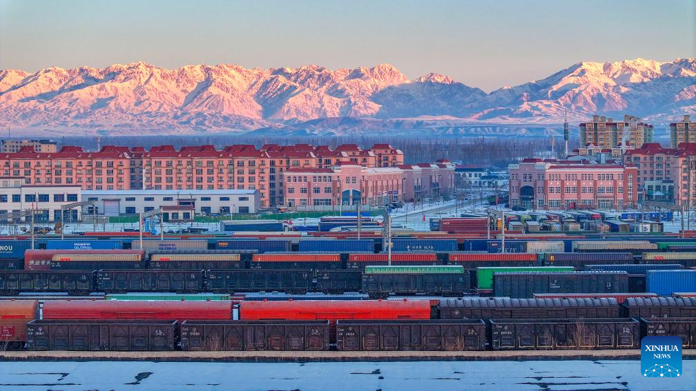 Horgos Port, a major railway hub in Xinjiang, has facilitated 8,541 China-Europe freight train trips by Dec. 24 this year, according to statistics from the railway department of Horgos Port. (Xinhua/Chen Shuo)