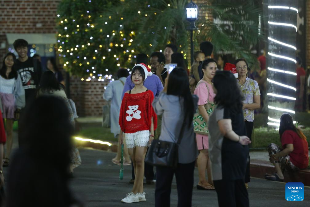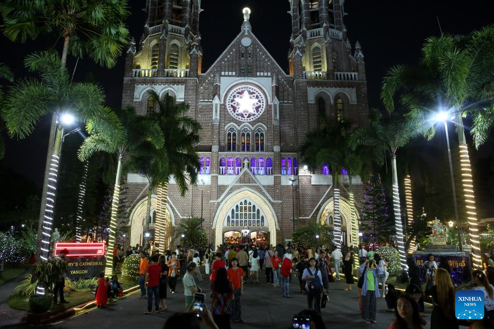 People visit a church on Christmas in Yangon, Myanmar, Dec. 25, 2024. (Xinhua/ Myo Kyaw Soe)