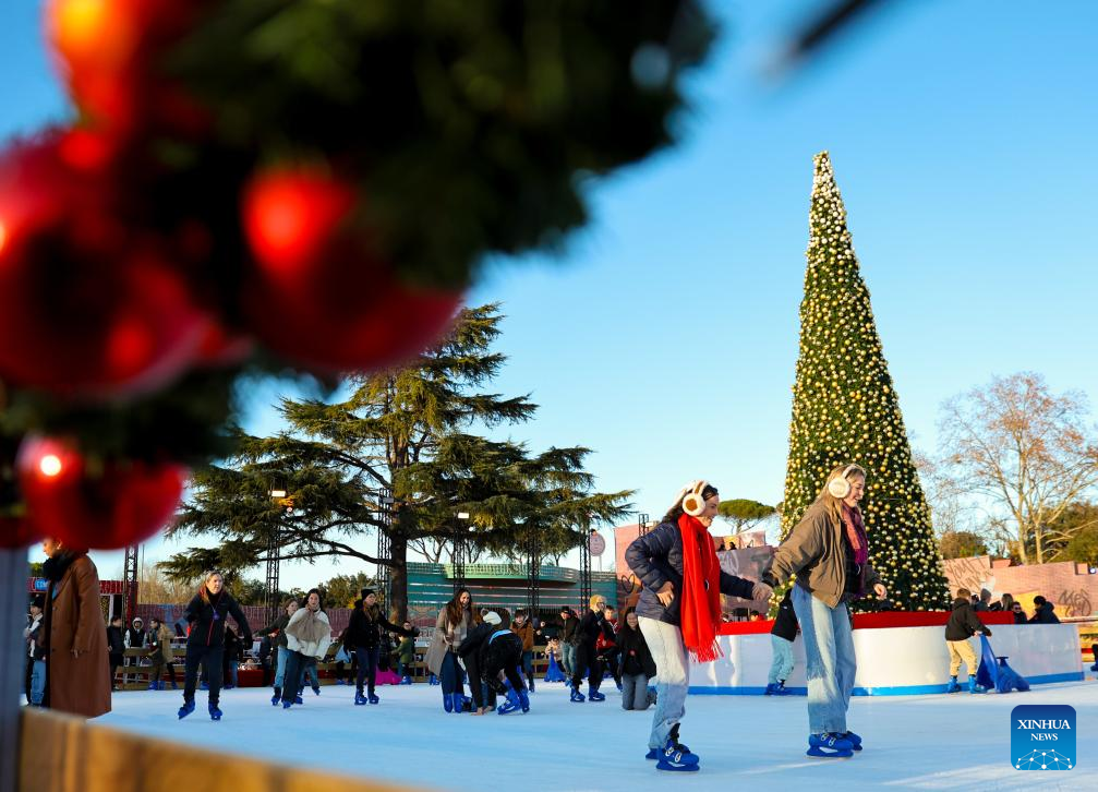 People skate at Villa Borghese in Rome, Italy, Dec. 25, 2024. (Xinhua/Li Jing)