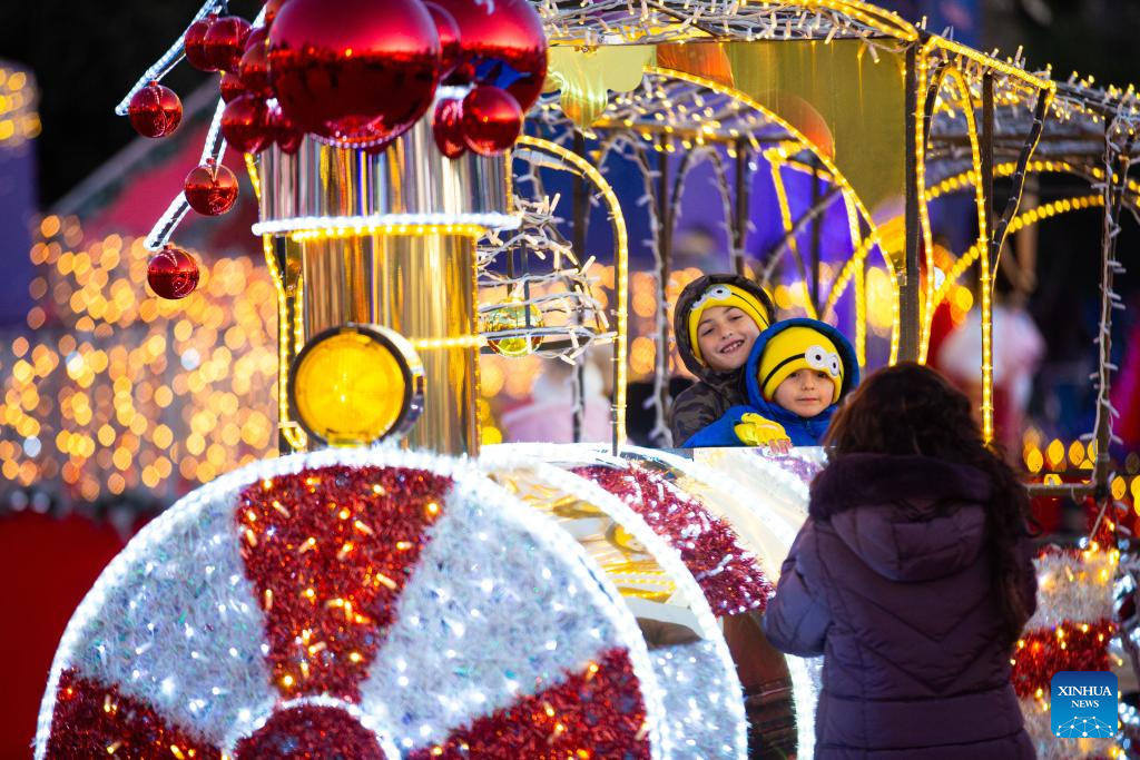 People ride a carousel at Piazza Navona in Rome, Italy, Dec. 24, 2024. (Xinhua/Li Jing)