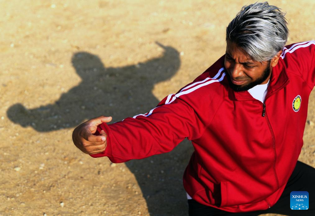 Mohammad Ullah practices drunken fist at Shaolin Epo Martial Arts School in Dengfeng, central China's Henan Province, Oct. 29, 2024. (Xinhua/Li Jianan)