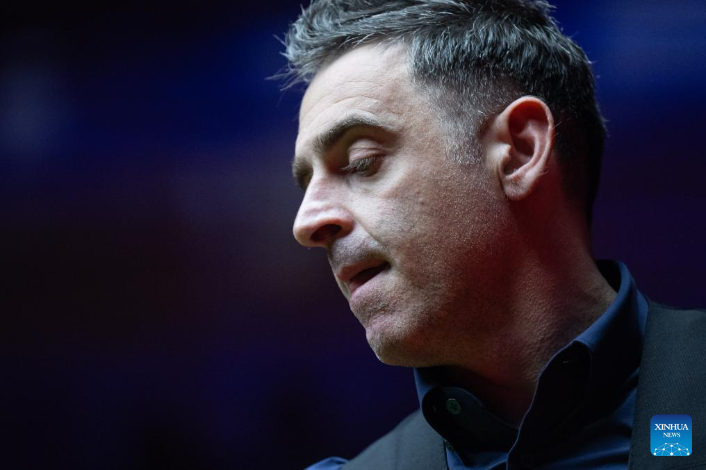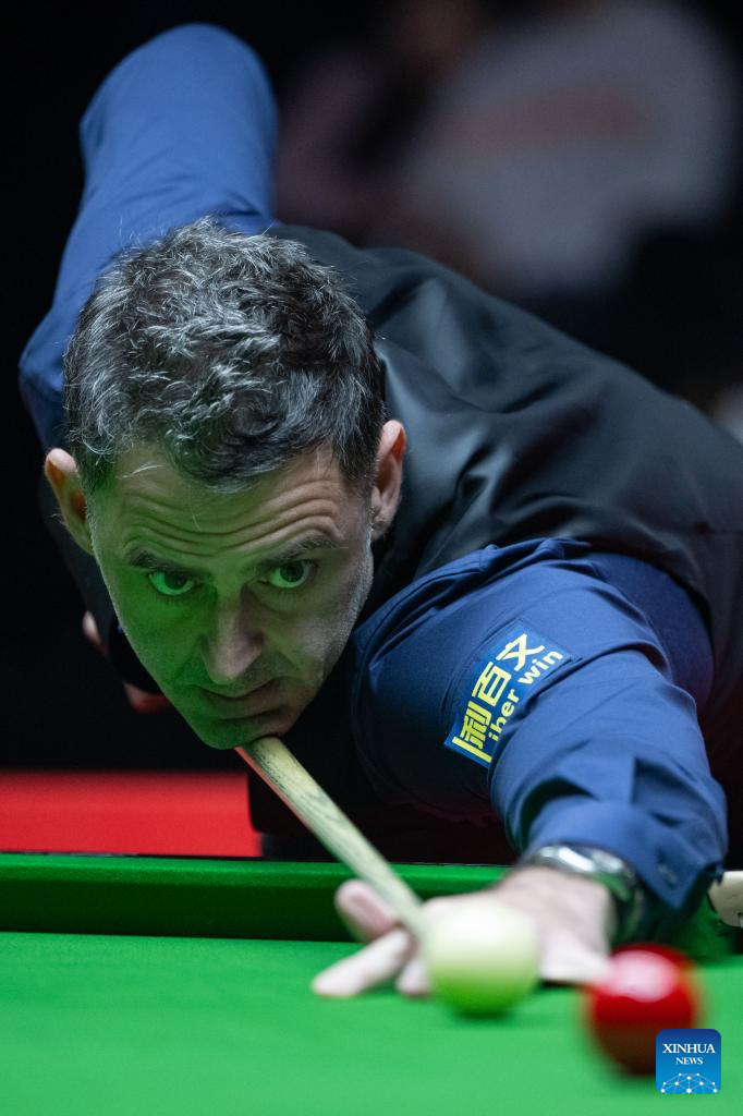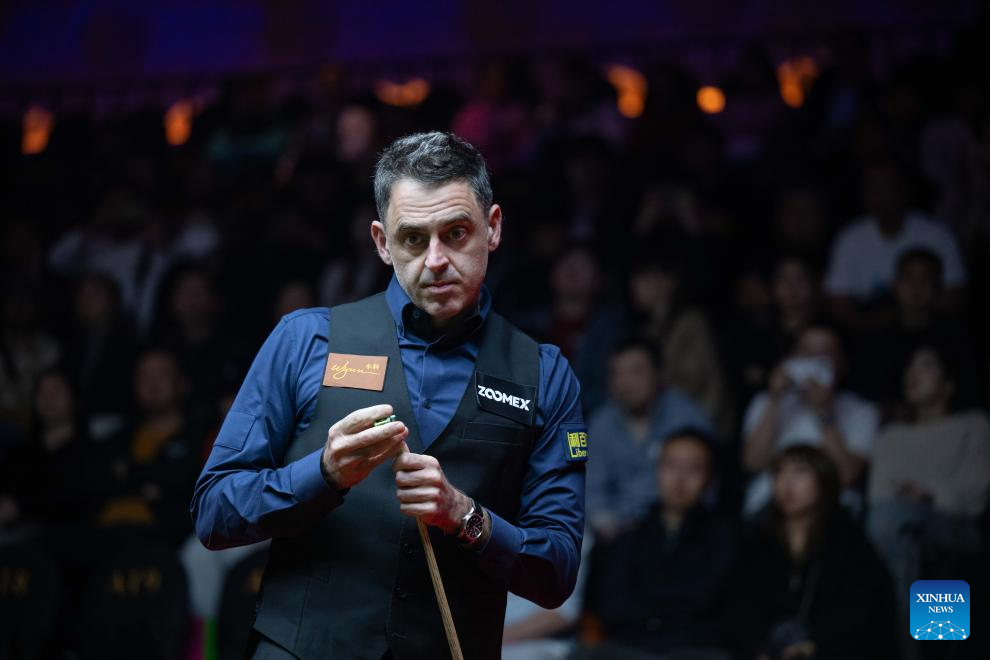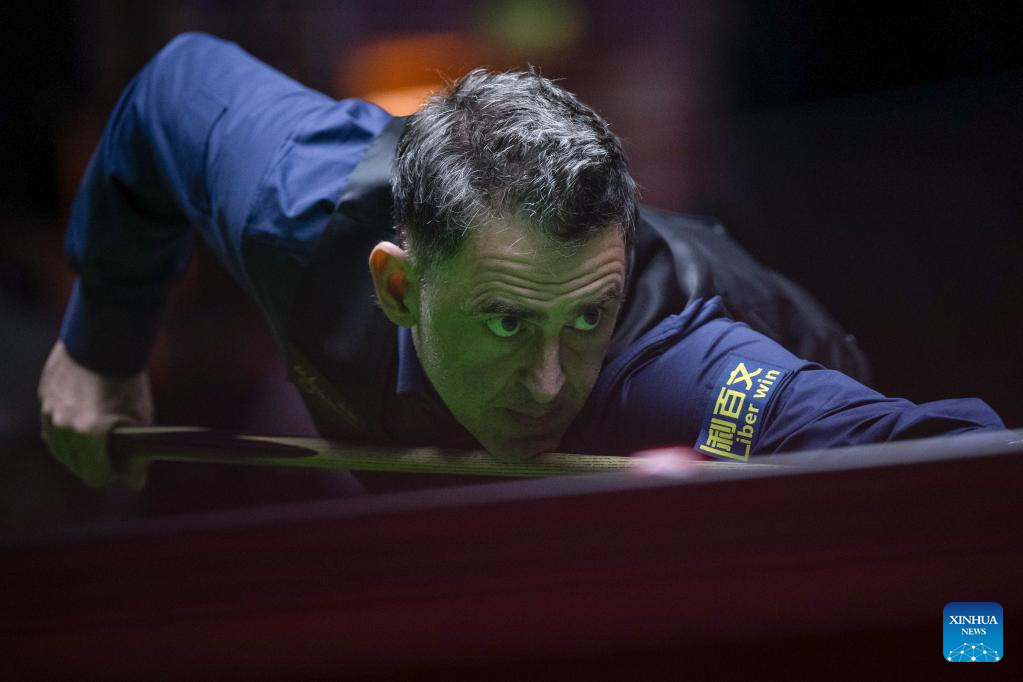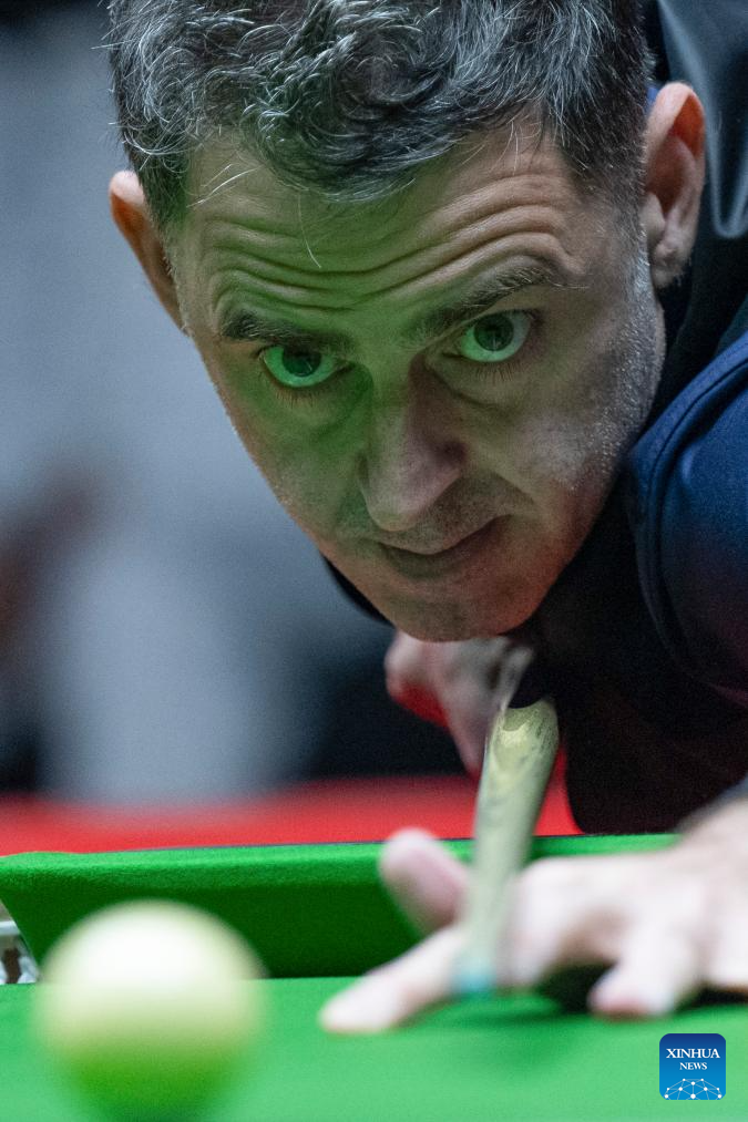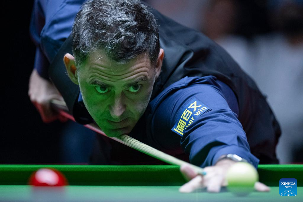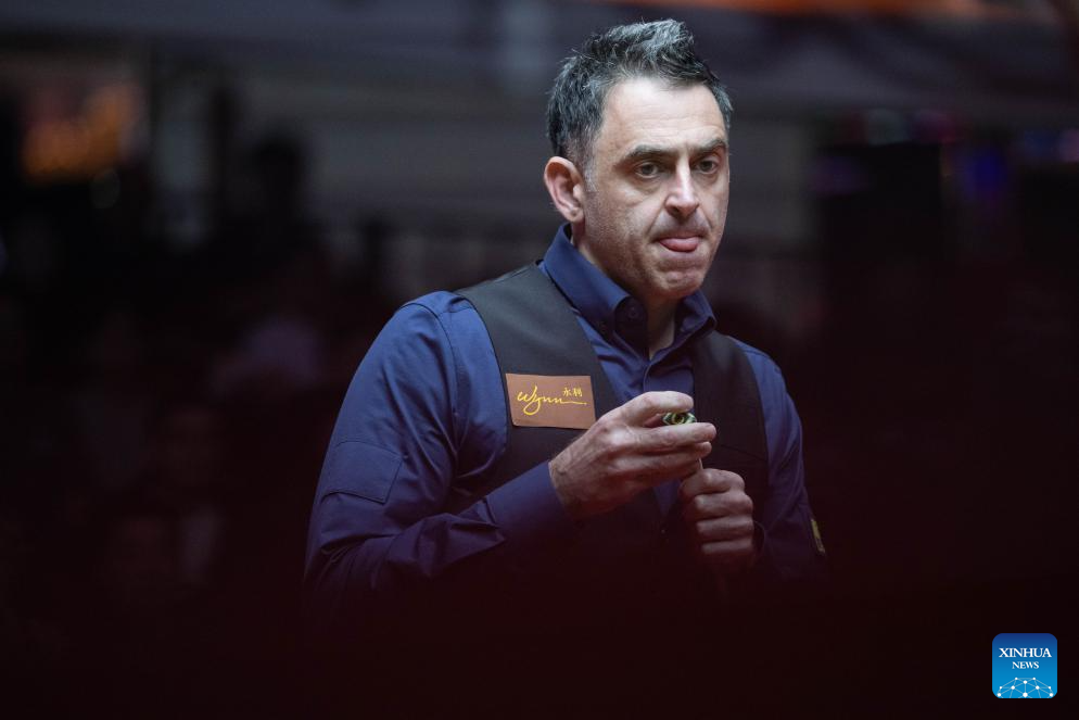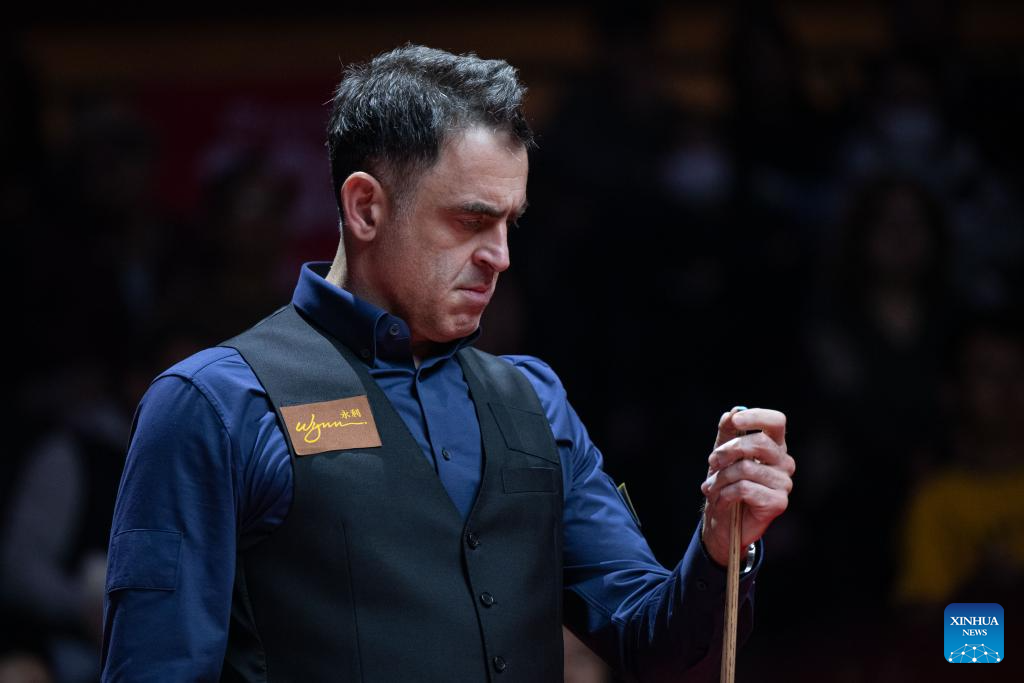 Ronnie O'Sullivan of England competes during the match against Marco Fu of China's Hong Kong at 2024 Macao Snooker Masters in south China's Macao, Dec. 26, 2024. (Xinhua/Cheong Kam Ka)