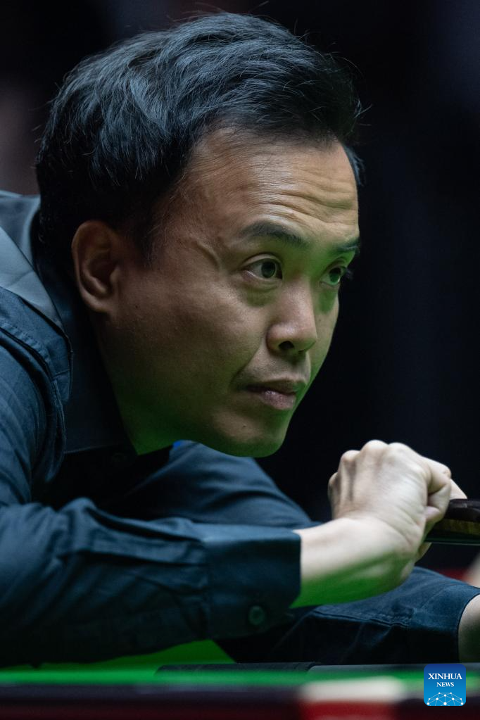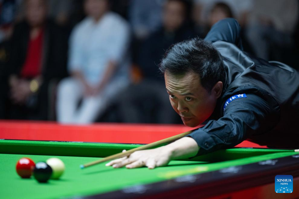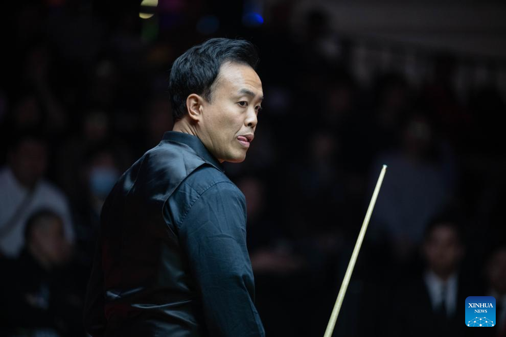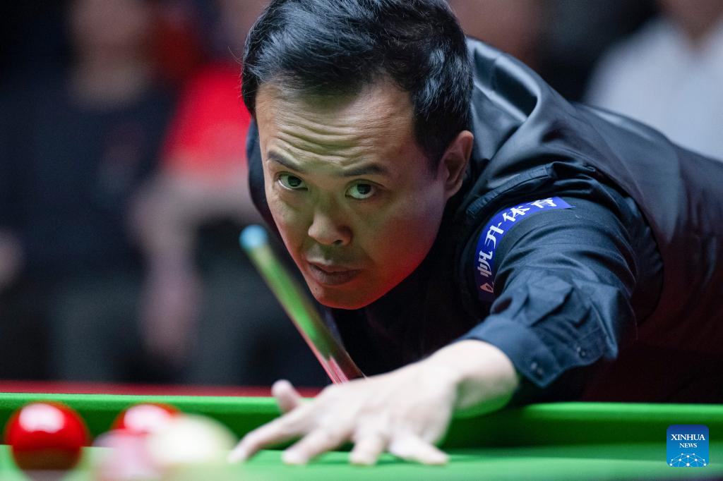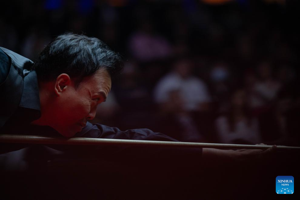 Marco Fu of China's Hong Kong competes during the match against Ronnie O'Sullivan of England at 2024 Macao Snooker Masters in south China's Macao, Dec. 26, 2024. (Xinhua/Cheong Kam Ka)