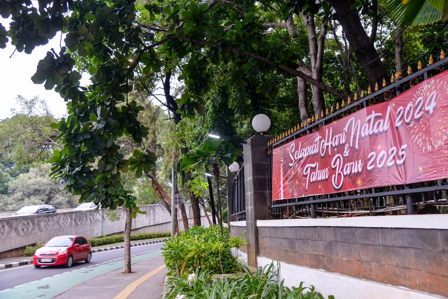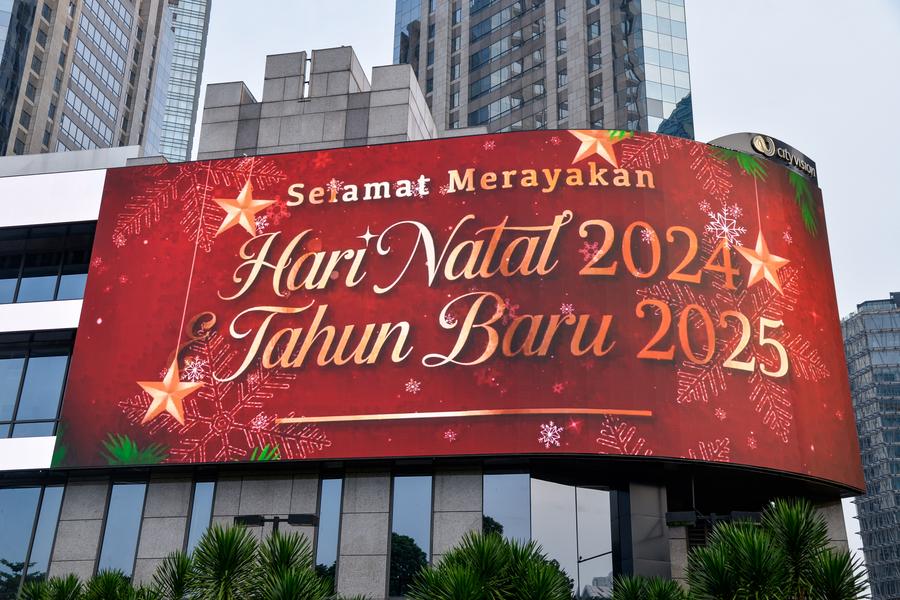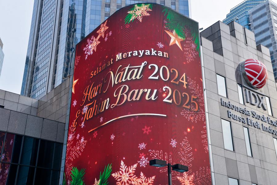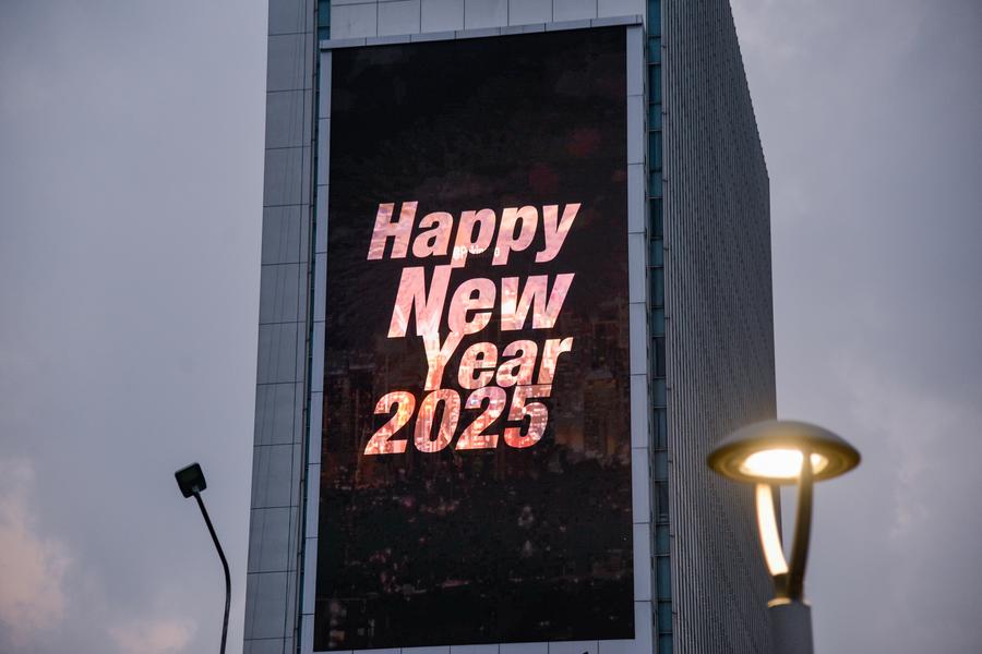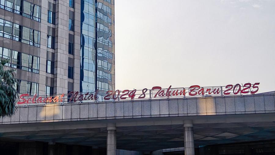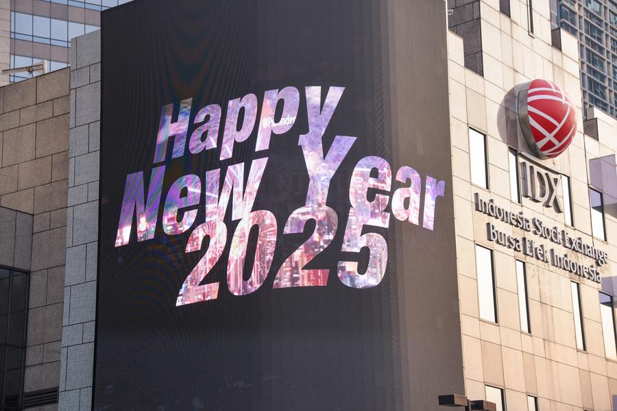 This photo taken on Dec. 29, 2024 shows a "Happy New Year 2025" message on an advertising screen in Sudirman Central Business District in Jakarta, Indonesia. (Xinhua/Xu Qin)This photo taken on Dec. 29, 2024 shows a message welcoming New Year 2025 on an advertising screen in Sudirman Central Business District in Jakarta, Indonesia. (Xinhua/Xu Qin)This photo taken with a mobile phone on Dec. 29, 2024 shows a decoration welcoming New Year 2025 in Sudirman Central Business District in Jakarta, Indonesia. (Xinhua/Xu Qin)This photo taken on Dec. 29, 2024 shows a banner welcoming New Year 2025 near Sudirman Central Business District in Jakarta, Indonesia. (Xinhua/Xu Qin)This photo taken on Dec. 29, 2024 shows a message welcoming New Year 2025 on an advertising screen in Sudirman Central Business District in Jakarta, Indonesia. (Xinhua/Xu Qin)■