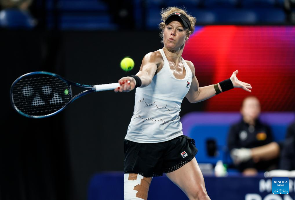 Laura Siegemund of Germany hits a return during the women's singles match against Gao Xinyu of China in the Group E round robin match between China and Germany at the 2025 United Cup tennis tournament in Perth, Australia, Dec. 30, 2024. (Xinhua/Ma Ping)